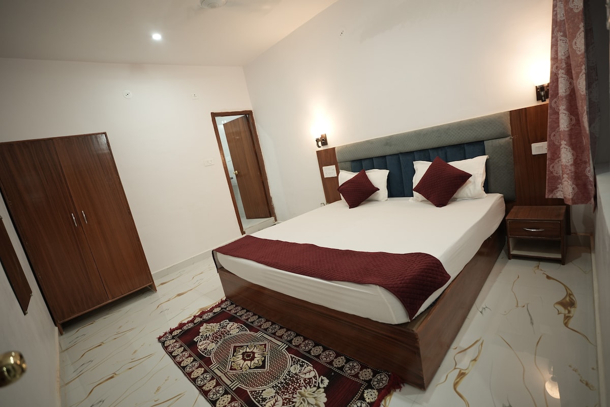 Un alojamiento familiar para ti y tu familia. Tenemos un total de seis habitaciones, dos con aire acondicionado y cuatro con ventilador. Cada habitación tiene su propio baño privado con ducha caliente y barra de champú/jabón. La casa está cerca del grupo occidental de templos, a 10 minutos a pie del centro del pueblo y a 20 minutos de la estación de tren (en coche). En mi casa tendrás desayuno de cortesía y también puedes probar comida india para almorzar o cenar.