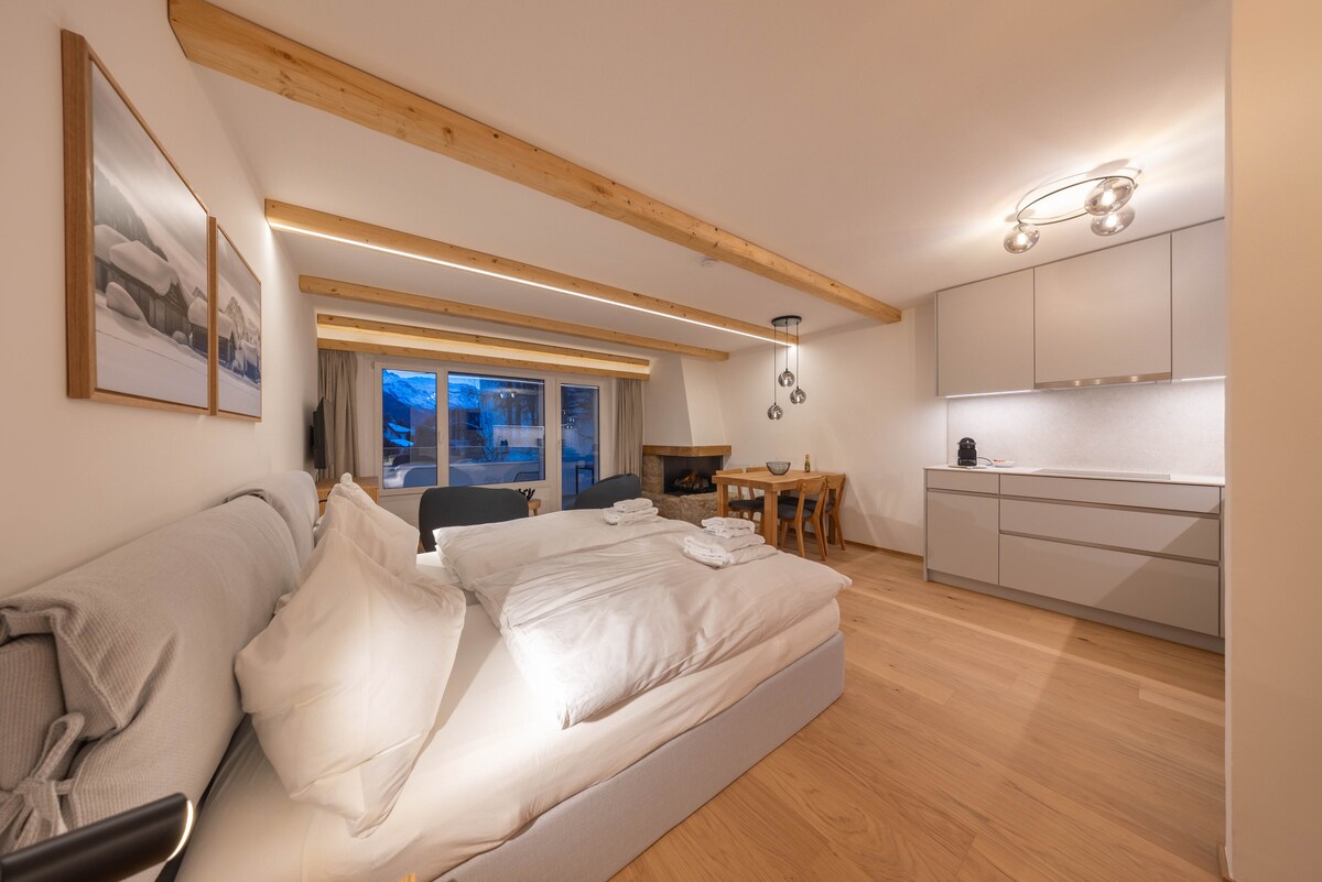 Este exclusivo estudio para dos huéspedes está ubicado en el segundo piso de Chesa Rosatsch, que fue completamente renovado en 2025. El estudio en sí se completó a finales de 2025, terminado con gran atención a los detalles y materiales de alta calidad. Desde el apartamento y su balcón soleado, puedes disfrutar de vistas tranquilas del paisaje alpino circundante, un lugar ideal para momentos de relajación, aperitivos al atardecer o días de descanso en las montañas.