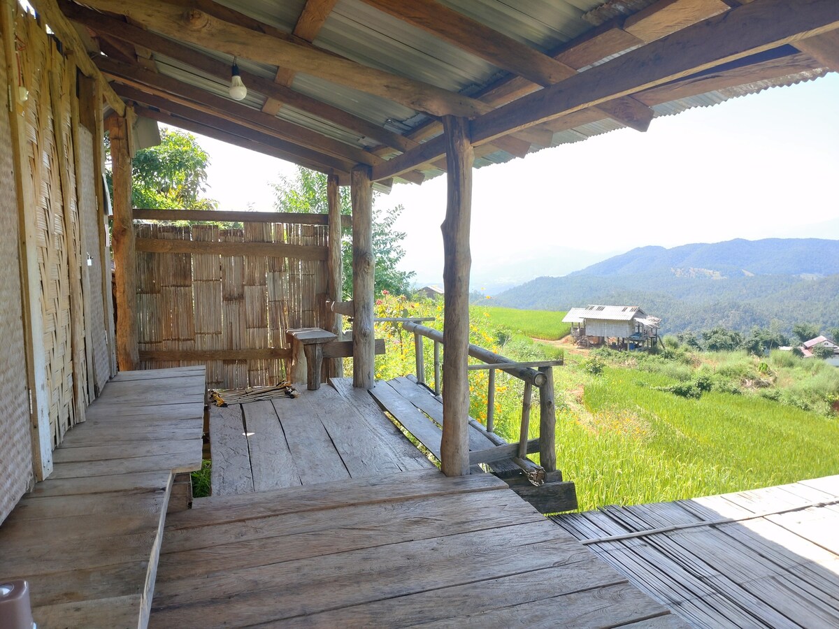nuestro bungalow es casas de bambú,las cabañas cuentan con raíces de césped tradicionales. Cerca del pueblo de la tribu Karen Hill, vistas a la selva, una almeja y un campamento tranquilo, rodeado de cascada,río y montaña. La casa es adecuada para parejas o amigos con una cama tamaño Gueen y puede agregar 2 camas adicionales para la familia. Puedes reservar excursiones de un día y pasar la noche.