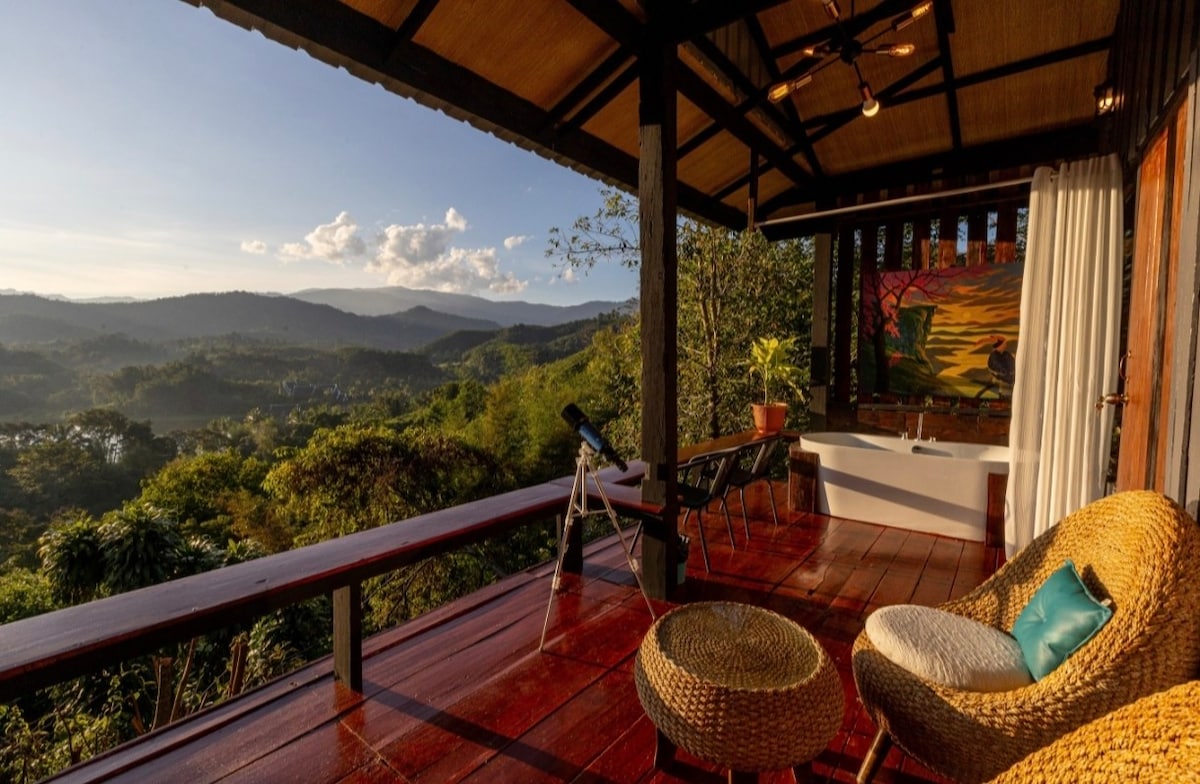 Ubicada en la cima de una cresta montañosa tranquila, esta cabaña personalizada ofrece vistas panorámicas de un tranquilo pueblo agrícola tailandés. La propiedad se siente aislada y serena. Desde el amanecer hasta el atardecer, disfrutarás de una refrescante brisa de montaña y vistas panorámicas que se extienden por el valle. En muchas mañanas, incluso puedes ver globos aerostáticos flotando suavemente por el cielo. ¿Necesitas transporte? Con mucho gusto te conectaremos con un conductor local amable y confiable a un precio justo.