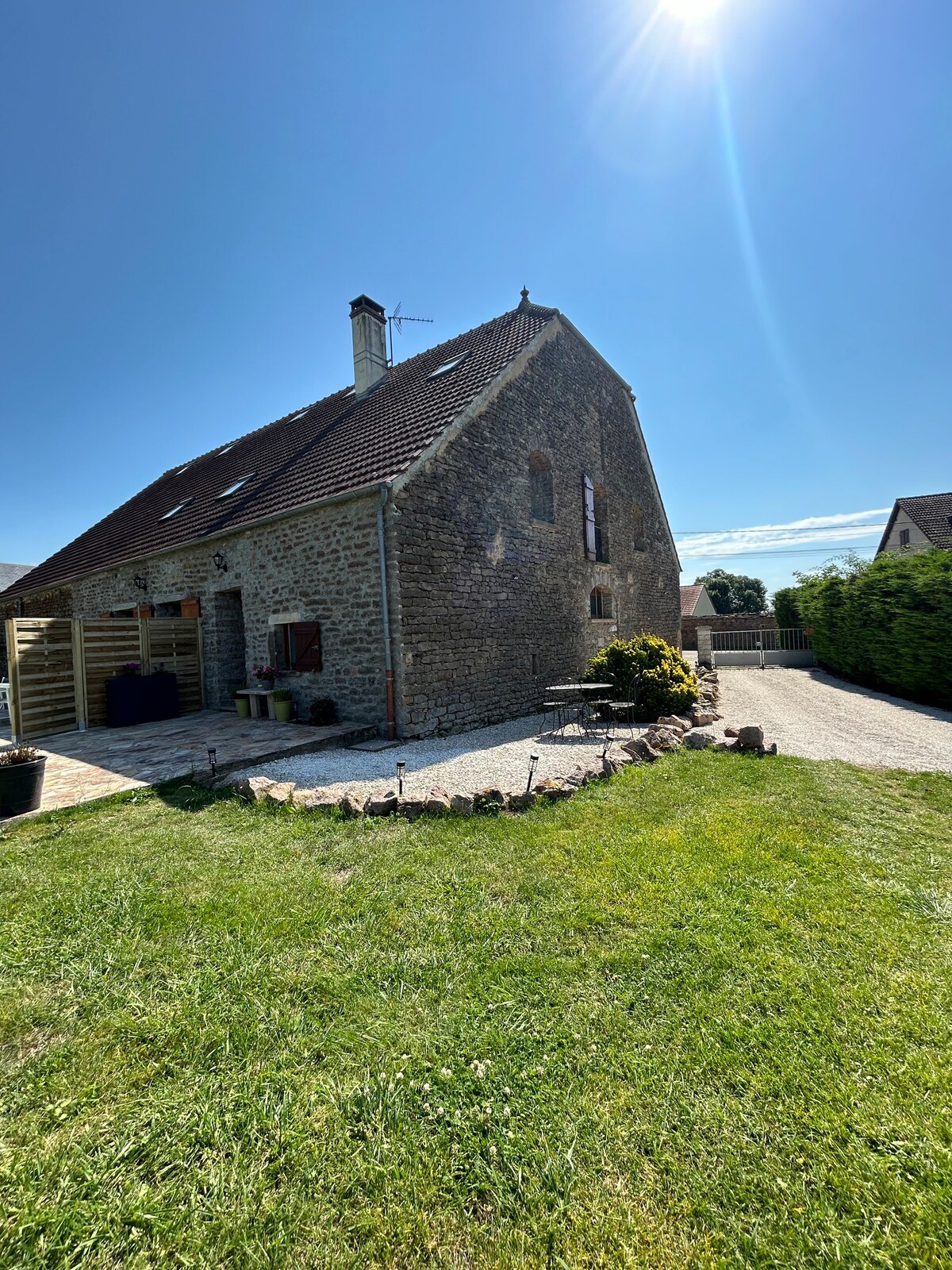Escapa del mundo loco y quédate en esta casa de piedra en un tranquilo pueblo borgoñón en el corazón de la campiña de Auxois. Te esperan colinas verdes onduladas, senderos antiguos, aire fresco del campo, canto de pájaros y noches estrelladas. Es posible que pases la mayor parte de tu tiempo en este refugio de paz y tranquilidad y pasees un poco más allá del jardín cerrado. También puedes aventurarte y descubrir sitios de la UNESCO, pueblos en la cima de una colina, ciudades medievales y los lagos y senderos del Parque Morvan.