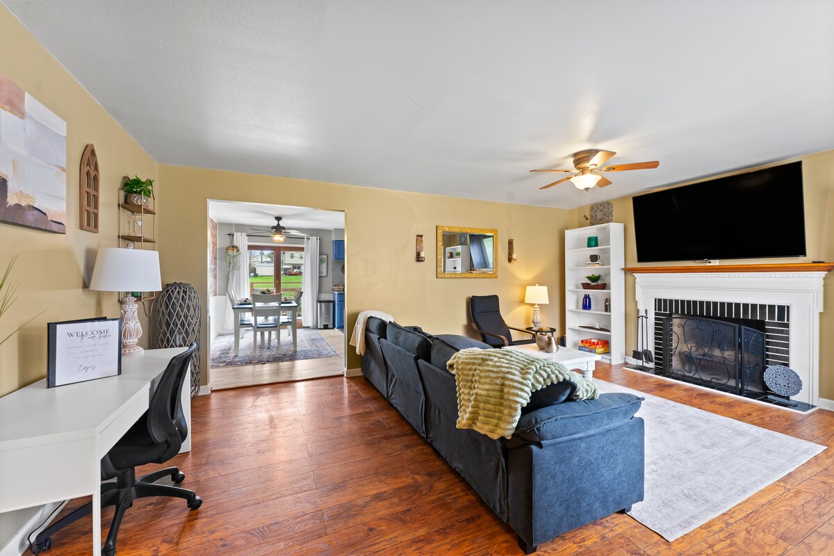La casa está completamente actualizada, manteniendo su encanto de granja. Los profesionales de negocios, familias, solteros o parejas disfrutarán de una experiencia única y relajante en su hogar lejos de casa. Una cómoda estación de trabajo, variedad de juegos de mesa para familias, juegos de arcade, juguetes para niños, parrilla para barbacoa, chimenea y caja fuerte son solo algunas de las muchas comodidades que se ofrecen. A solo tres minutos a pie de Mill Creek Park. A cinco minutos en coche de muchos restaurantes, tiendas, casinos, cines y hospitales.