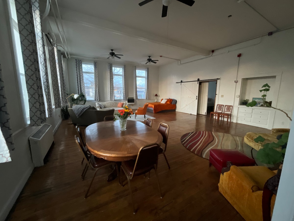 Located in the Mahoning Commons neighborhood, a growing artist and theater district. The studio is situated in a late 19th century former city school, now home to the Calvin Center for the Arts. The multipurpose studio is open with large windows and a light minimalist loft design. The studio features a private bathroom and kitchenette. Perfect place to relax and take in the vast amenities of Youngstown. Close proximity to I-680, walking distance to downtown, YSU and Mill Creek Park.