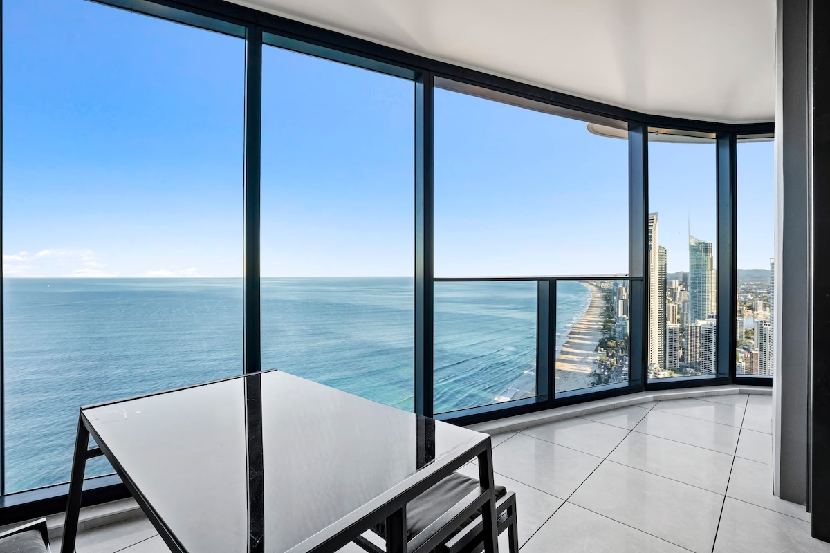 Apartamento frente a la playa ubicado en un piso alto con ventanas del piso al techo, balcón privado con vistas al mar y acceso a la playa Surfers Paradise justo al otro lado de la carretera. El apartamento cuenta con una cama tamaño king en el dormitorio y un sofá cama doble plegable en el salón. Cocina totalmente equipada, wifi de alta velocidad, aire acondicionado, televisores con Netflix y YouTube, estacionamiento gratuito y lavandería privada completa. Los huéspedes tienen acceso al gimnasio, el spa, la sauna, la piscina y las barbacoas cerca de la piscina y en la terraza de la azotea.