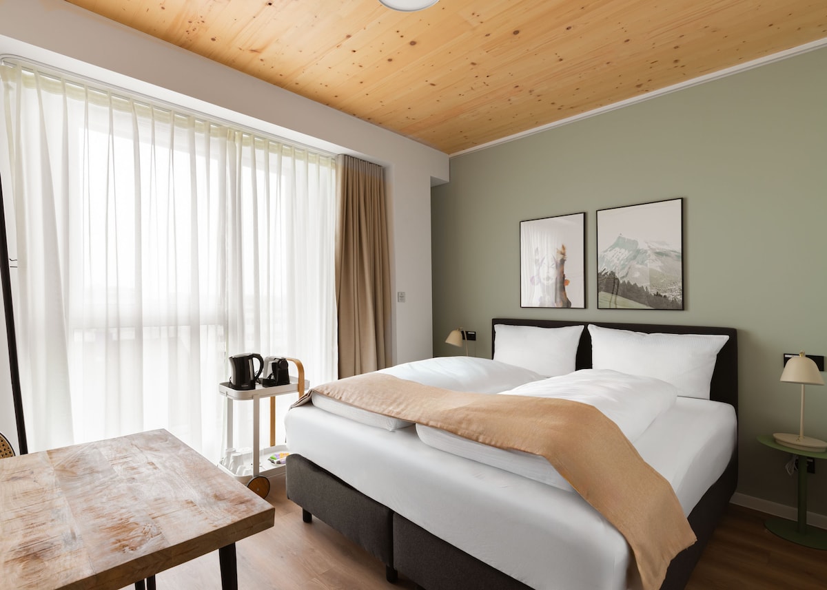 La hermosa vista tiene 4 habitaciones dobles, de las cuales 2 se pueden conectar como una habitación familiar con una puerta de entrada. También está nuestra suite inundada de luz, que tiene su propia terraza y una vista única del valle principal. Siéntete libre de utilizar la cocina en algunas habitaciones. Estaremos encantados de ofrecer desayuno bajo petición. La llegada es sin contacto El precio depende del número de personas y del número de habitaciones necesarias.