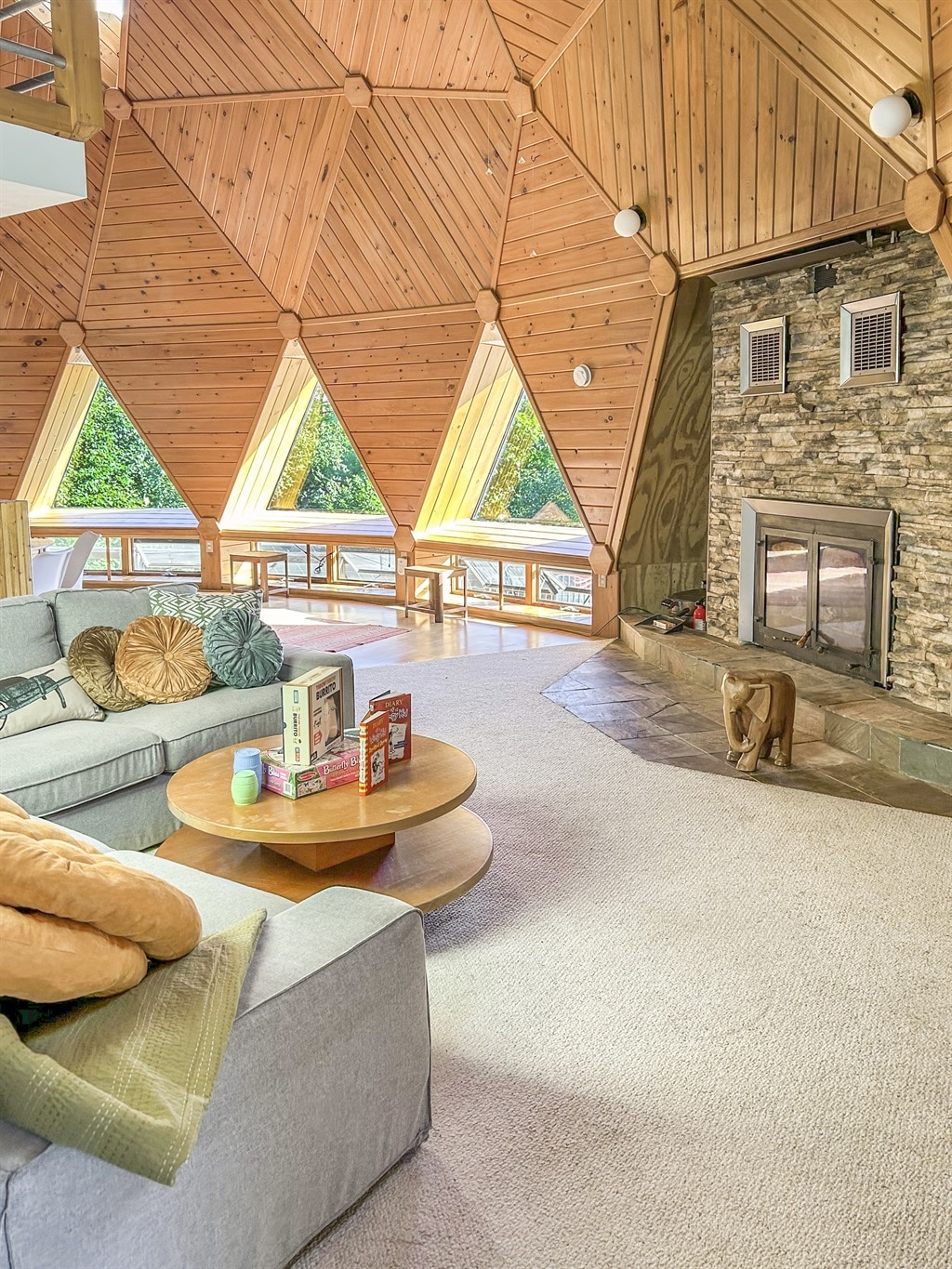 Escondida en el bosque de Franklin, Maine en 214 Great Pond Rd, esta casa con cúpula geodésica frente al lago alimentada por energía solar se encuentra en paz a orillas del Great Pond, ofreciendo una mezcla mágica de intriga arquitectónica, serenidad junto al lago y un compromiso con la sostenibilidad. Ya sea que estés contemplando las estrellas en la terraza, remando en kayak desde tu muelle privado o viajando un día a Acadia, has encontrado tu nueva escapada favorita.
