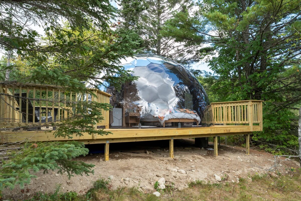 Cúpula geodésica frente al lago a 45 minutos de Acadia NP