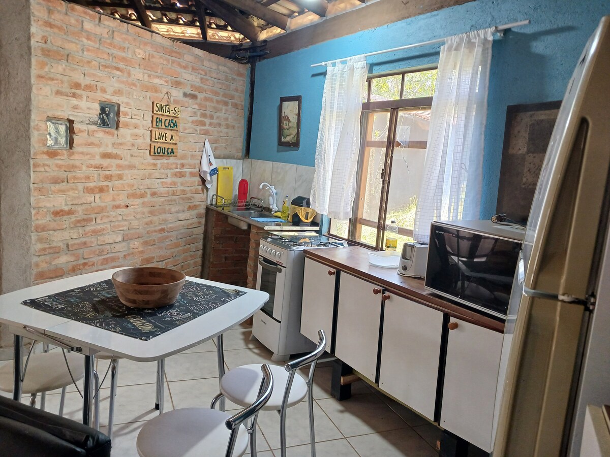 Una cabaña que recibe toda la frescura de la Serra da Cantareira. Tiene una planta baja, incrustada en una enorme piedra, donde hay una sala de estar, baño y cocina. En el piso intermedio está el dormitorio, provisto de un balcón, desde donde se puede ver una buena parte de la granja y desde donde se puede sentir la frescura del bosque. El pequeño ático aún no está disponible. En la otra pared, se adaptó una puerta para tener acceso a la vista desde la parte trasera de la cabaña; se puede ver una hermosa montaña y todo el césped. Control de plagas realizado el 28/03/2026