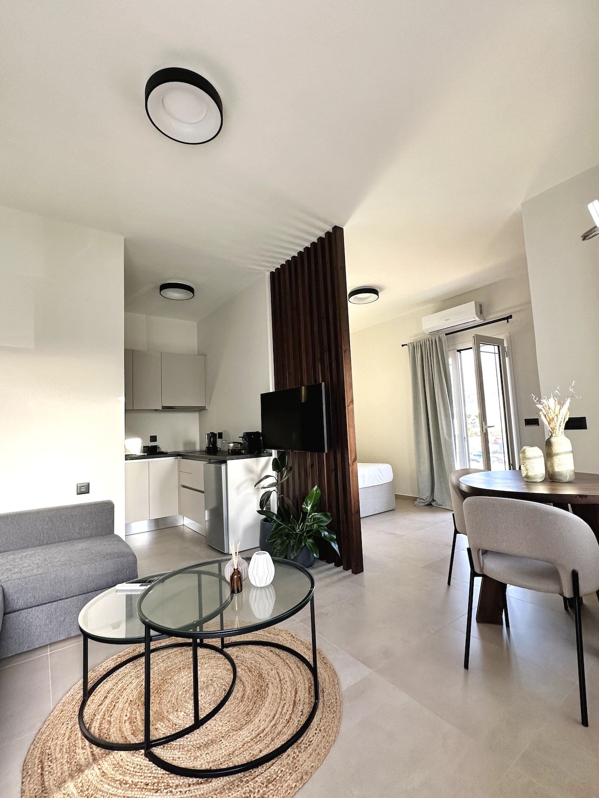 Pappous Central Suite es un nuevo refugio de lujo para dos personas, ubicado en una inauguración de un edificio muy bien renovado en 2025. "Pappous" significa abuelo en griego, que simboliza la sabiduría, la tradición y la cálida hospitalidad. Esta elegante suite combina características inteligentes modernas con encanto auténtico, que ofrece un jacuzzi, un amplio balcón y una estancia tranquila en el corazón de Malia. Con una plaza de estacionamiento compartida, cargador gratuito para vehículos eléctricos y fácil acceso a la playa, la vida nocturna y las tabernas, es perfecto para una verdadera escapada cretense.