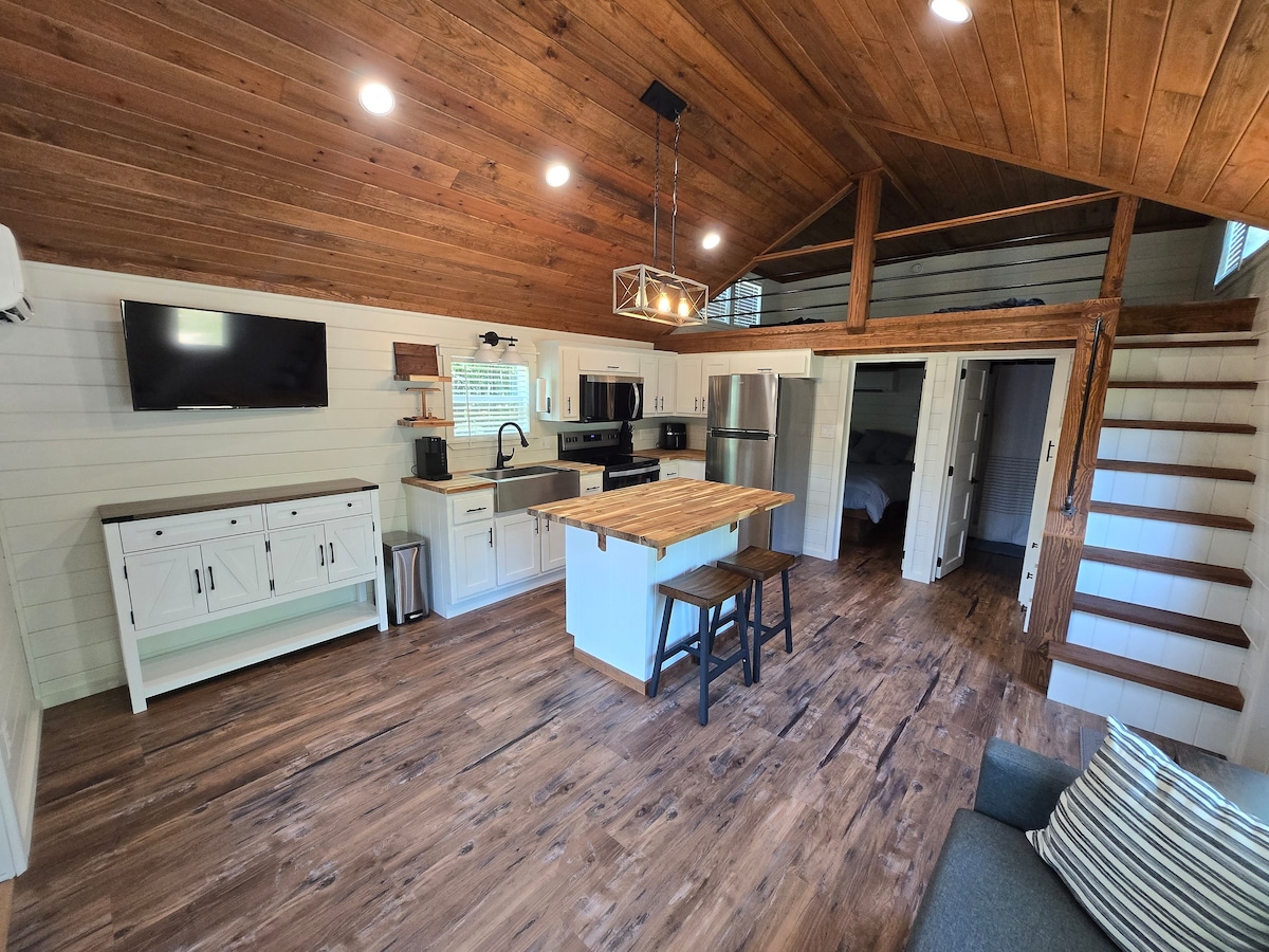 Bellamente situado en la granja McDaniel Pine en Wade, Carolina del Norte, te sentirás como en casa en la cabaña Bluff. Una configuración de estudio con una cama tamaño queen y 2 sillas que se convierten en cómodas camas individuales. También hay un colchón de aire disponible. Cómoda sala de estar con TV de pantalla plana grande y espacio de trabajo de escritorio dedicado. Baño privado, ducha a ras de suelo y una pequeña zona de cocina con placa eléctrica, ollas, sartenes, cafetera, microondas y nevera. ¡Bonito patio exterior con chimenea y acres para pasear!