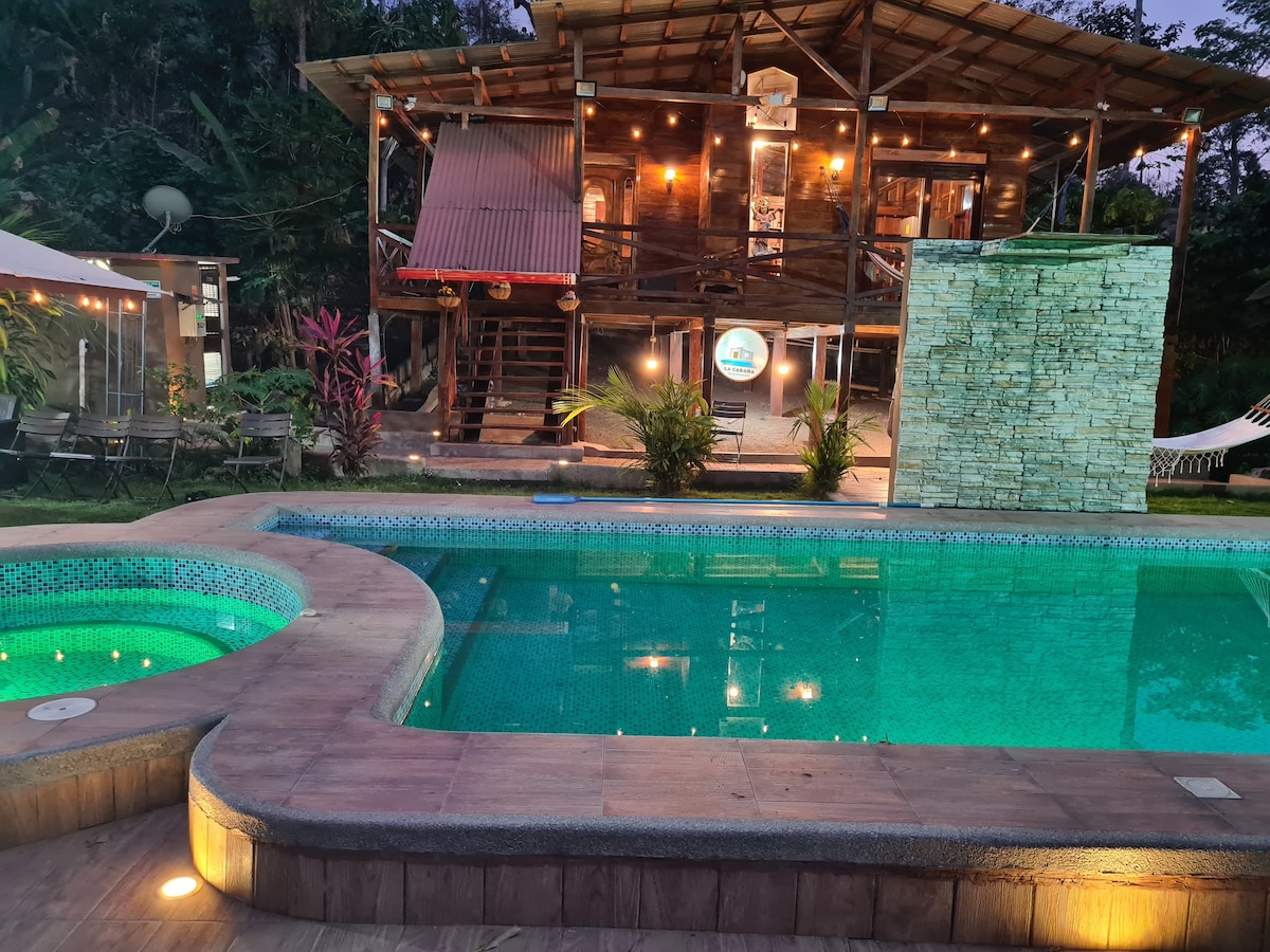 Déjate envolver por la magia de nuestra encantadora cabaña, a solo 90 minutos de Guayaquil. Este oasis privado te brindará una experiencia de relajación y conexión con la naturaleza como ninguna otra. Sumérgete en una atmósfera de tranquilidad y serenidad, lejos del ajetreo Nuestras amplias instalaciones, diseñadas con el máximo cuidado y confort, te harán sentir como en casa. Relájate en los cómodos espacios interiores, climatizados y libres de insectos Disponemos de servicio de restaurante