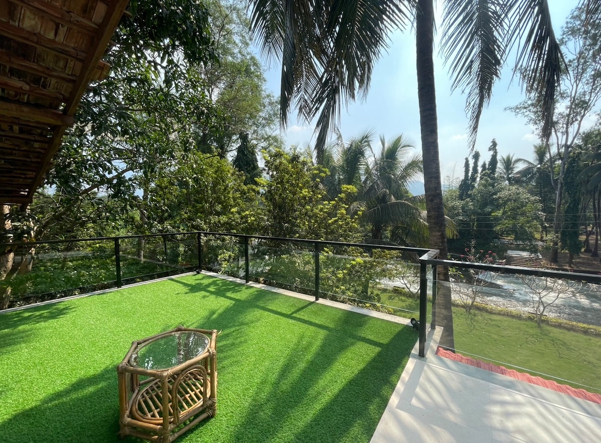 Disfruta de un retiro sereno en Sohana, una pintoresca granja de 3 dormitorios y 4 baños en Karjat. Este refugio, adornado con exuberante vegetación, cuenta con una piscina, un río que fluye y aparece en Hotelier India. El diseño rústico, hecho con amor, ofrece espacios amplios y abiertos, que invitan a una sensación de libertad y comunión con la naturaleza, un escape ideal para una desintoxicación de la ciudad. Destaca por su compromiso con la sostenibilidad ambiental. Esta villa tiene capacidad para 15 personas durante la noche y 30 personas durante el día, por lo que es ideal para fiestas.