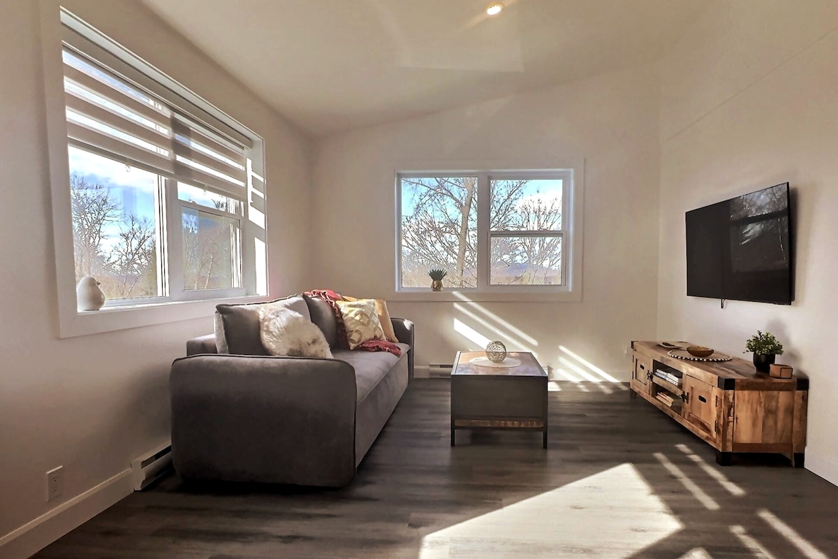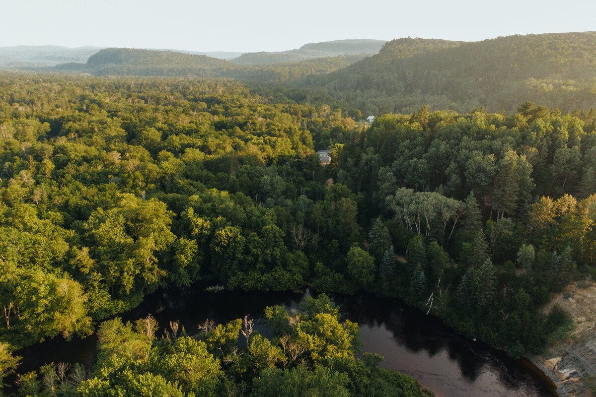 Nuestro chalet en el bosque nórdico es perfecto para pasar tiempo de calidad en pareja (o con un niño) o para un tratamiento de trabajo (con wifi de alta velocidad). El interior de madera es cálido y acogedor. Las ventanas de altura completa ofrecen unas vistas impresionantes sobre un valle boscoso. La cocina y la sala de estar de concepto abierto te mantienen en la conversación mientras cocinas. Si prefieres cocinar al aire libre, hay un fogón con parrilla y mesa de comedor al aire libre. A solo 70 minutos en coche de Montreal. El lago está a 25 minutos a pie si estacionas cerca.