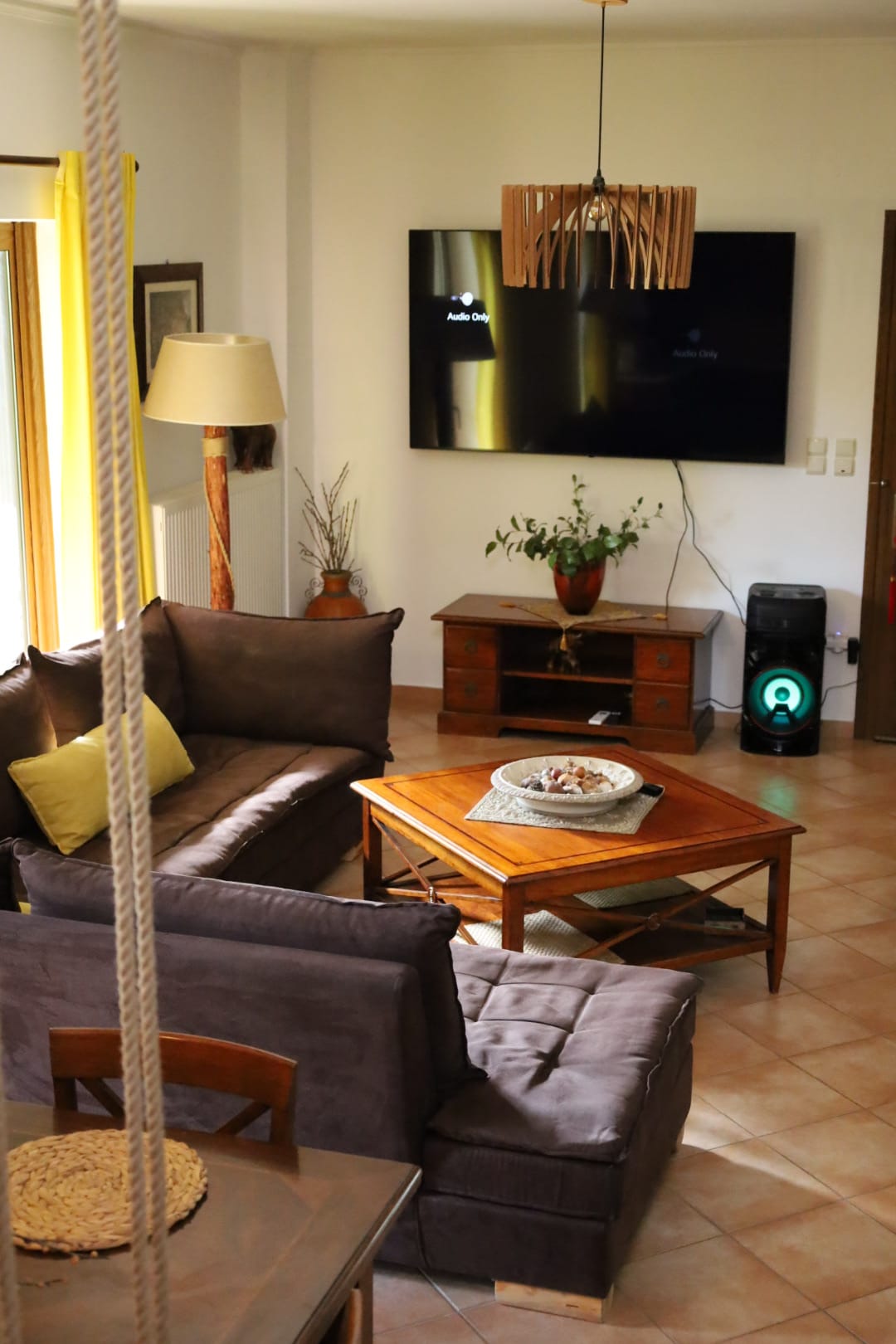 Welcome to our exquisite rooftop garden oasis nestled in the heart of Kalamata, Greece. Our rooftop boasts a luxurious private pool, perfect for refreshing dips under the Mediterranean sun. As the day turns into night, gather around our projector for open-air movie nights with the starry sky as your backdrop. We also feature a small gym equipped with what you need to stay fit while enjoying panoramic view. Book your stay with us today and elevate your travel experience to new heights.