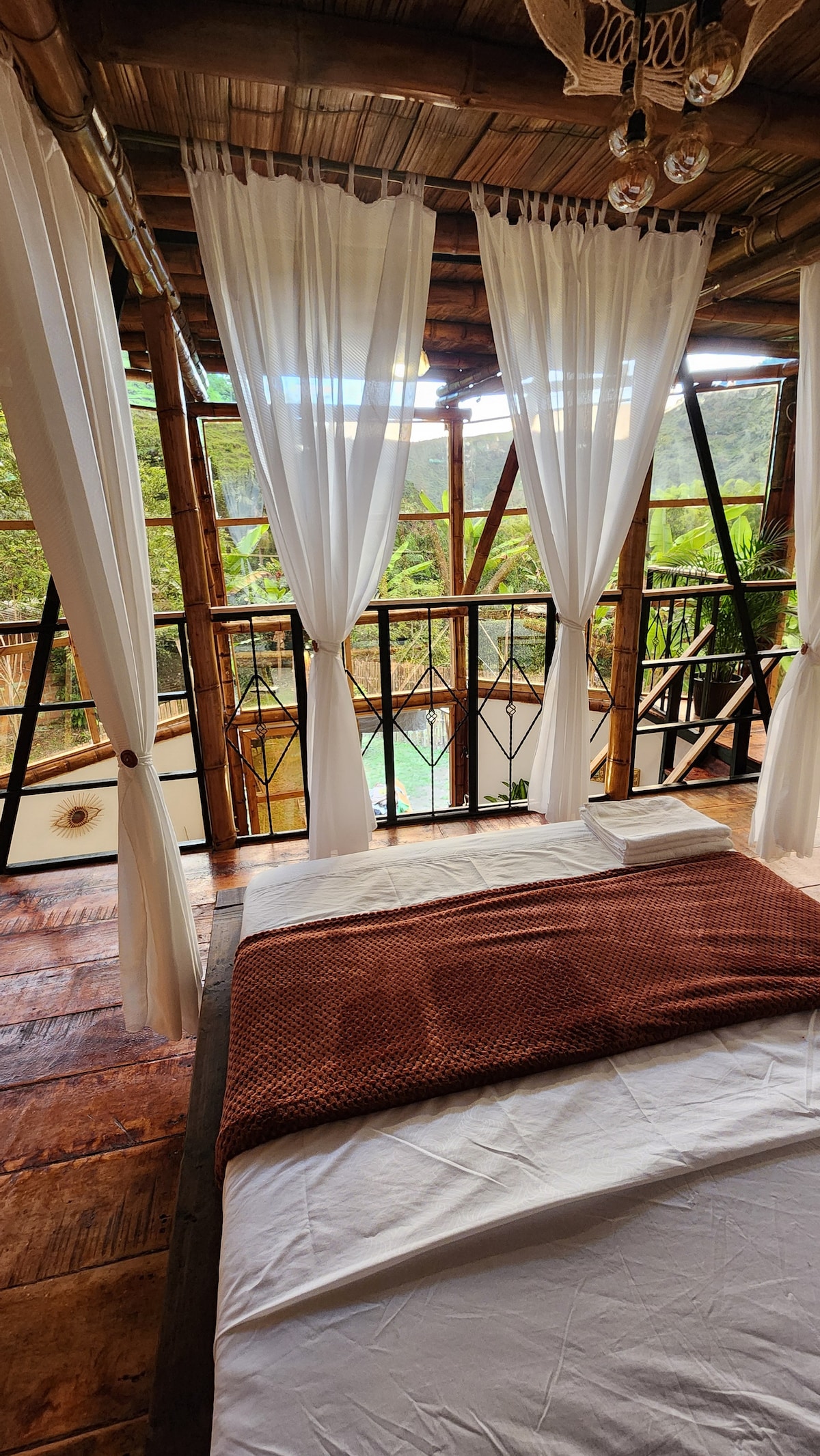 Para amantes de la naturaleza y que les guste los espacios privados. Cabaña tipo Loft se encuentra inmersa en un gran guadual que se puede disfrutar desde la cama, el baño, la sala y un deck exterior de madera que se complementa muy bien con una pequeña piscina natural con calefacción. Es una experiencia privada, pero no aislada ya que hace parte de una finca llamada Viga Vieja