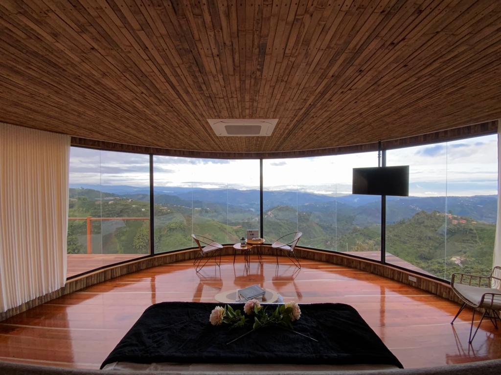 Ubicado en una colina en la vereda Bajo Tablazo, a solo 15 minutos de Manizales, Atardeceres del Café ofrece una muestra de los paisajes cafeteros, con énfasis en el ambiente Luxury-Boutique y la tranquilidad que ofrece la naturaleza. Situados en una colina con vista a las montañas, nuestros glampings ofrecen una experiencia privada en medio de la naturaleza. contará con zonas de relajación como jacuzzi, asoleadoras y hamacas, su propia cocina, comedor y sala.
