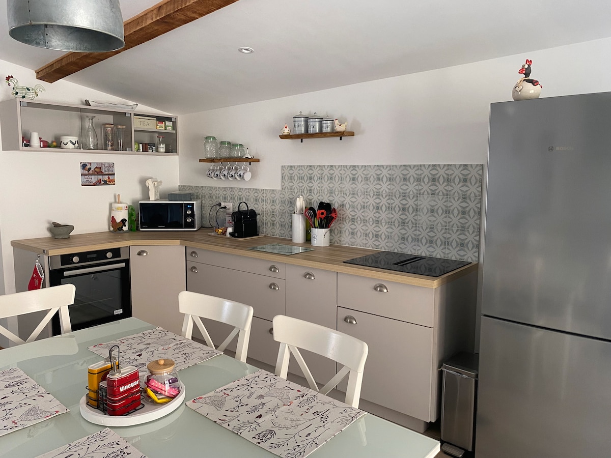 Casa fresca, cómoda y espaciosa (90 m2) en 2 pisos. Amplia cocina , salón y terraza a nivel de la calle y fabulosa habitación abierta de 1 dormitorio doble en el 2do piso. Una granja convertida en una montaña en un pueblo medieval a 16 minutos de la A6, esta tranquila casa es una parada ideal para las vacaciones en los Alpes o el sur de Francia. Ten en cuenta que hay un estudio con su propia entrada en la planta baja inferior, alquilado por separado.