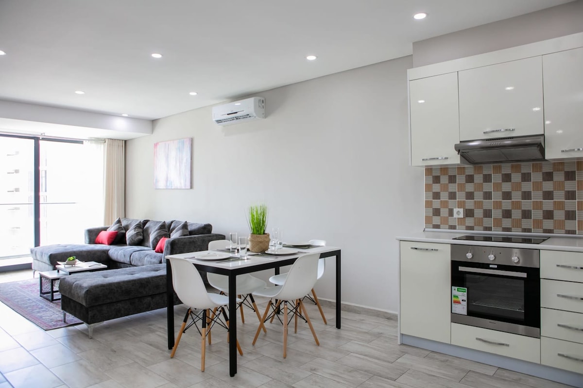 Maison Moz Executive - Polana Plaza V. Edificio moderno, dos dormitorios, un baño, cocina abierta, amplio balcón, estacionamiento privado, piscina y gimnasio en la azotea. Nuestros apartamentos ejecutivos están pensados para los huéspedes que buscan comodidades modernas y adicionales, como piscina y gimnasio, y no renuncian a alojarse en el corazón de Maputo. ¿Buscas alojamiento para estancias largas? Ponte en contacto con nosotros para obtener ofertas especiales.