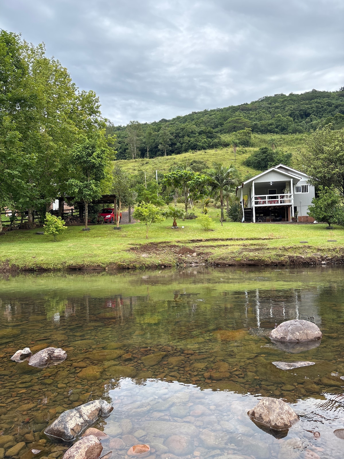 Una cabaña romántica y rústica que ofrece una vista deslumbrante de las montañas, ubicada a orillas del Rio dos Sinos, uno de los ríos más grandes e importantes de Río Grande del Sur. Rodeada de una exuberante vegetación, esta joya en la naturaleza es un refugio sereno, donde el ruido de las aguas se entrelaza con el canto de los pájaros, creando un escenario perfecto para escapar de la ciudad y perderse en la belleza natural del interior de Caraá.