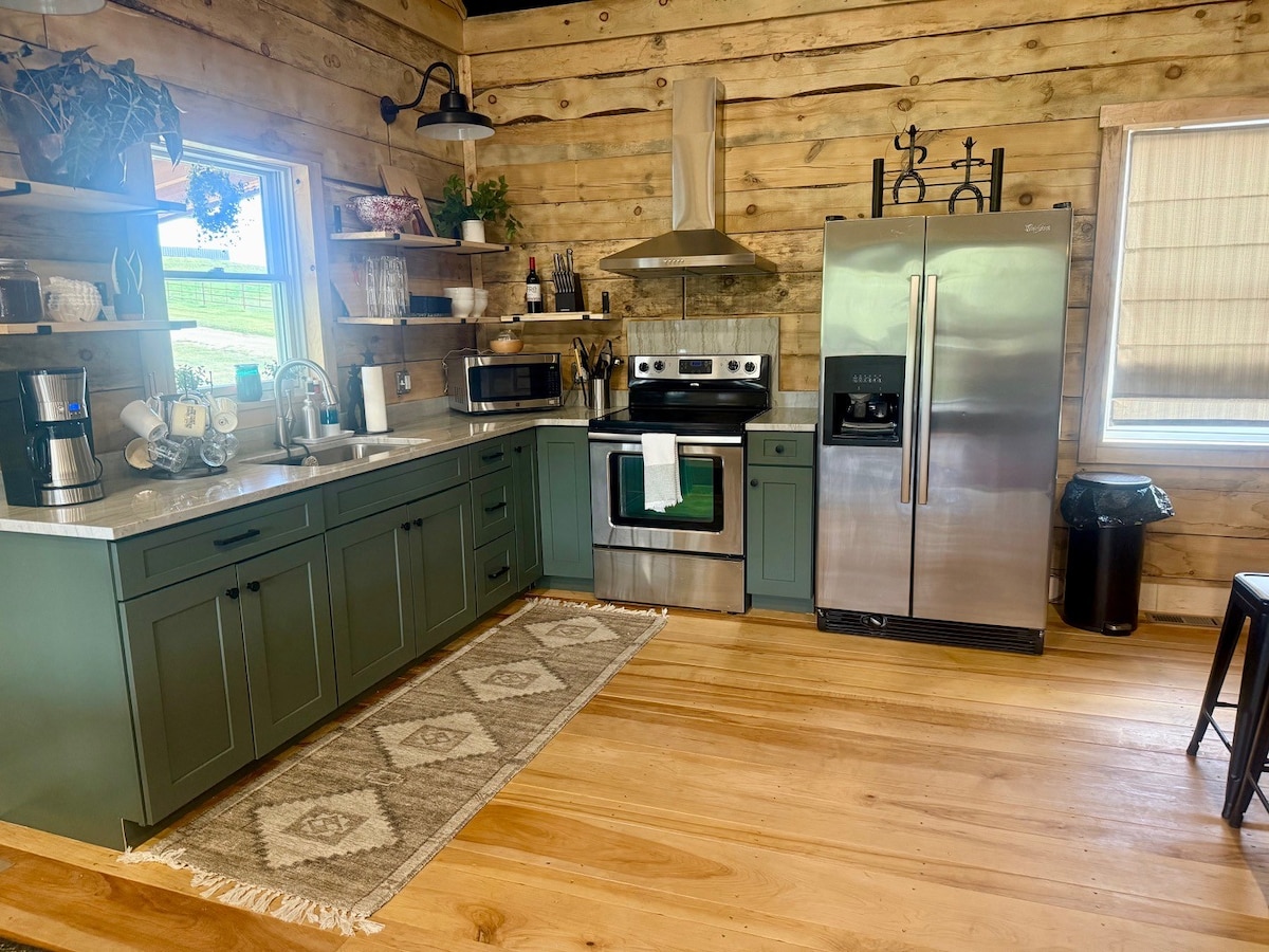¿Alguna vez has querido quedarte en una casa pequeña pero no has tenido la oportunidad? ¡Ahora puedes alojarte en una casa pequeña construida a medida a lo largo del poderoso río Misisipi en Bellevue Iowa! Estas pequeñas cabañas de madera cuentan con todas las comodidades de una casa estándar, como calefacción/aire acondicionado, cocina, baño, sala de estar y altillo para dormir. Cada casa pequeña tiene capacidad para 4 adultos con una cama tamaño queen en el loft y un sofá cama en la sala de estar. En el exterior hay una zona de picnic privada.