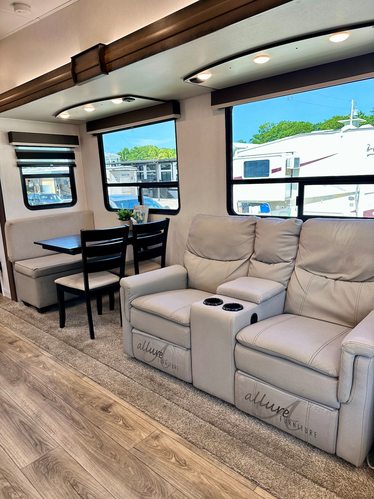 The ultimate escape from the mainland to relax and reload while enjoying the comforts of home. Enjoy the sun and sea and at night relax at your new 35ft fifth wheel with all the amenities of home. Two bedrooms and two baths with a full modern kitchen. Reclining chairs and HD tv's. Great WIFI to stream your favorite shows or game. Great central air conditioning and modern appliances. BBQ grills on grounds and a beautiful beach for nightly sunsets.