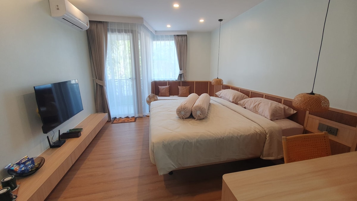 Estudio moderno con una enorme cama tamaño king, TV inteligente y elegantes acabados de microcemento. Todo es nuevo. Disfruta de la piscina, el gimnasio, el sauna, la sala de vapor y el spa, todas las comodidades del condominio Replay. A poca distancia a pie de la playa y el pueblo de pescadores. Perfecto para nómadas digitales o parejas que buscan comodidad, estilo y conveniencia en Koh Samui.