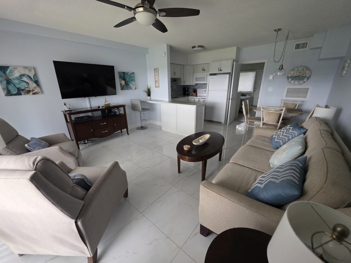 Nuestro condominio de 2 dormitorios y 1 baño ofrece encanto junto al mar y comodidades modernas. A solo 10 minutos a pie de la playa, disfruta de toallas de playa, sillas y sombrilla proporcionadas. Mantente productivo con internet rápido y relájate con un televisor inteligente. Hemos adaptado el lugar para que sea tranquilo y hogareño para estadías largas. La cocina está totalmente equipada y la sala de estar invita a la comodidad. Explora tiendas, restaurantes y atracciones cercanos. Reserva ahora y experimenta la vida costera en su máxima expresión.