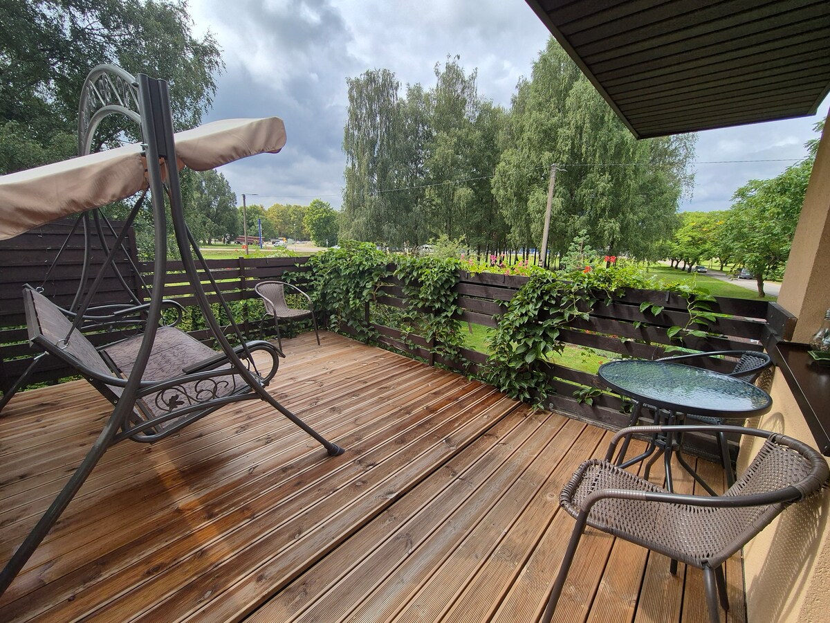 El apartamento de 2 o 3 habitaciones en alquiler está en el segundo piso de su propia casa. Departamento con amplio balcón y terraza al aire libre. El departamento cuenta con todo el equipo de cocina, lavadora, cafetera. Entrada independiente y espacio de estacionamiento seguro en el patio de la casa. La casa se encuentra en el hermoso territorio del parque regional Nemunas loop (junto a la autopista E28). A 200 metros de distancia: bosque y sendero para bicicletas/caminar. A 5 km. se encuentra la ciudad turística, Birštonas, donde puedes disfrutar de las delicias del spa en los sanatorios.