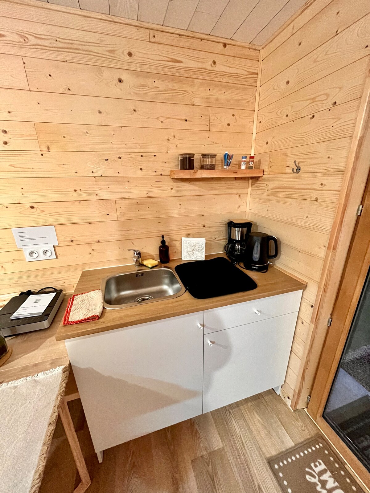 Chalet de madera nuevo de 19 m2 con una cama doble de 140 cm y un sofá cama. Gran terreno alrededor de la cabaña con nuestras amigas las gallinas en el fondo del jardín. Estamos en la casa en el terreno y le daremos la bienvenida la mayor parte del tiempo para la entrada. Se aplican reglas estrictas en la casa y le agradecemos de antemano que las respete. EL CHALET ES IDEAL PARA 2 ADULTOS Y 2 NIÑOS, PERO NO PARA 4 ADULTOS, YA QUE PODRÍAN ESTAR MUY JUNTOS. Chalet con aire acondicionado