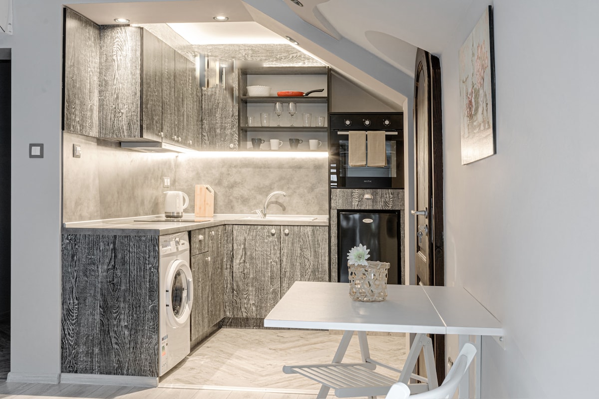Disfruta de una experiencia de lujo en este céntrico alojamiento. ¡Este pequeño apartamento acogedor está ubicado a la perfección! En el corazón de la ciudad, a pocos metros del barrio de culto Kapana, en el centro de Plovdiv. Al mismo tiempo, en una ubicación tranquila en el cuarto piso con una hermosa vista al casco antiguo. Tienes a tu disposición todo lo necesario para pasar la noche o incluso durante una semana o más. Con cocina totalmente equipada, baño y con cama cómoda, perfecto para una o dos personas.