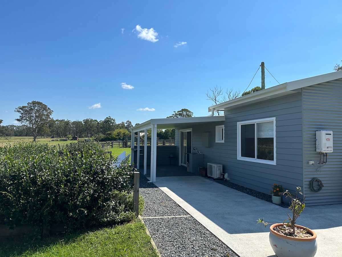 Baroona Dairy Cottage is located just 5kms out of Nabiac on the Mid North Coast, close to beautiful beaches, forest hikes & cafes. We're only 3 mins from the Pacific Hwy, 20 mins from Blackhead & Diamond Beach and 25 mins from Forster/ Tuncurry. Once a working dairy, now converted to a one bedroom cottage with a spacious, sun-filled living area, full kitchen, newly renovated bathroom and cosy Queen-sized bedroom with a beautiful outlook onto the paddocks.