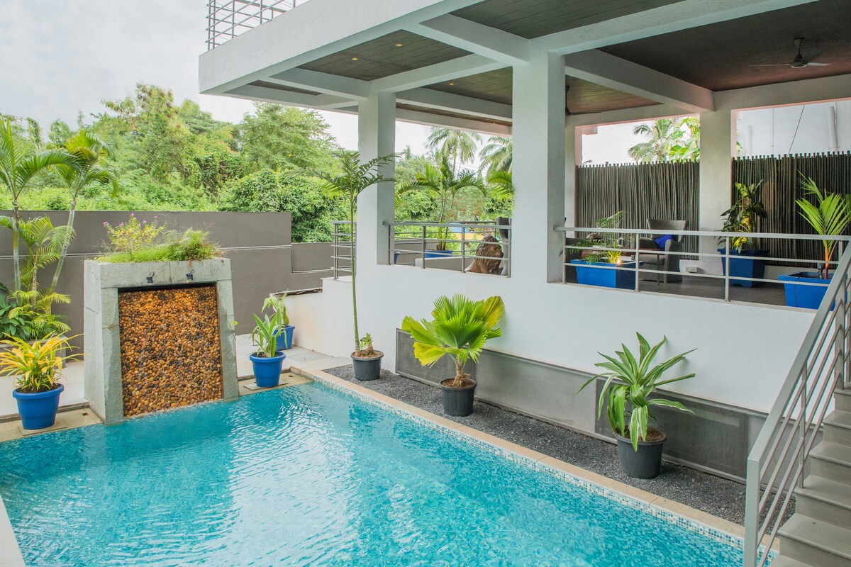 Escápate a tu escondite tropical privado en el corazón de Calangute. Por favor, ten EN cuenta que: * La piscina de inmersión es totalmente personal y privada, adjunta al dormitorio con hermosas vistas a las palmeras de Goa (no es un jacuzzi ni una bañera de hidromasaje). * Los huéspedes también tienen acceso a una piscina compartida en la azotea (de 8:00 a. m. a 8:00 p. m.), perfecta para darse un chapuzón al atardecer. * Respaldo de energía disponible para luces, ventiladores, Wi-Fi y carga.