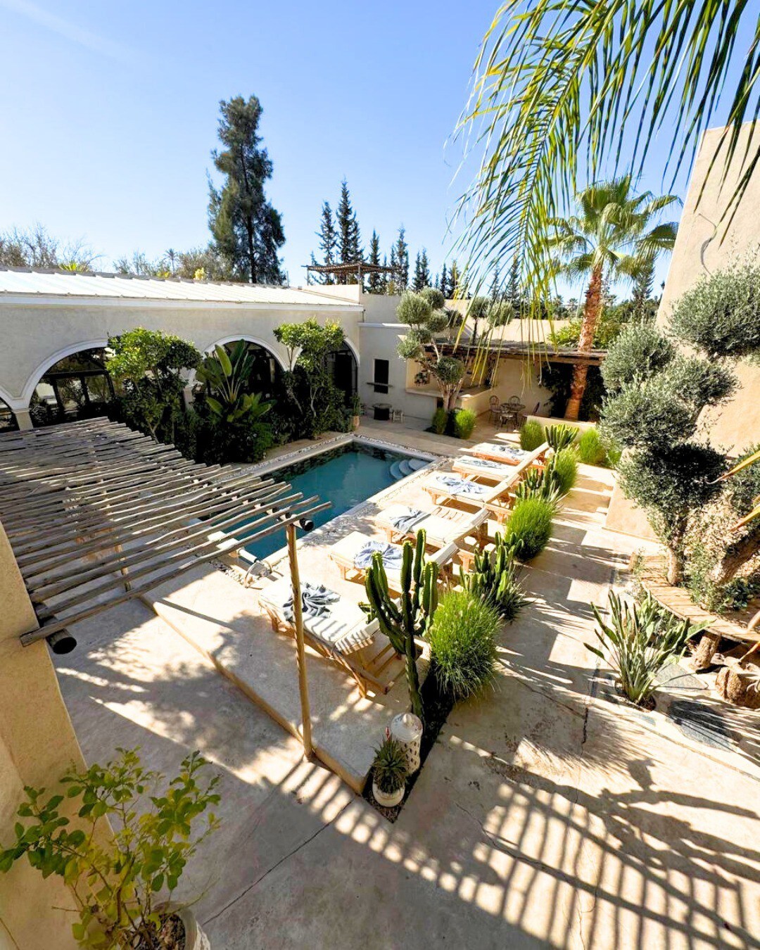 La Villa Ourtane se encuentra en Oumnas, pueblo bereber al sur de Marrakech, cerca del desierto de Agafay. Lejos del tráfico, cerca de los campos de golf de Royal Palm y Samanah, el lugar es tranquilo. Dentro de una propiedad privada de media hectárea, la casa principal consta de 3 dormitorios y 1 suite con su terraza privada. El jardín amurallado es un remanso de paz. Puede disponer de una segunda suite en la planta baja del pabellón (suplemento).