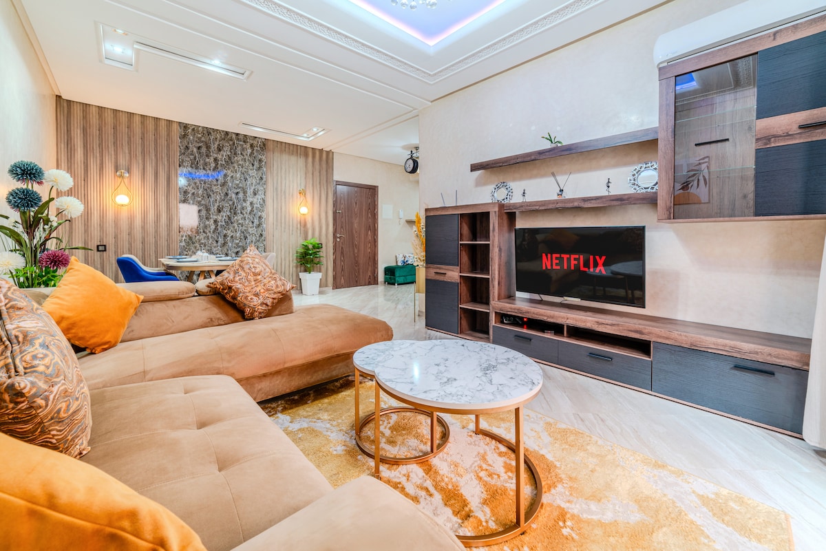 Bienvenido a La Suite Jonan. Amplio apartamento ubicado en el corazón del animado barrio de Marrakech, donde el lujo y la comodidad convergen para crear una estancia inolvidable. Situado en una ubicación céntrica privilegiada, ofrece fácil acceso a los famosos monumentos de Marrakech, los bulliciosos zocos y la animada vida nocturna. Sumérjase en el ambiente encantador de Marrakech mientras disfruta de la comodidad y el lujo de nuestro apartamento.