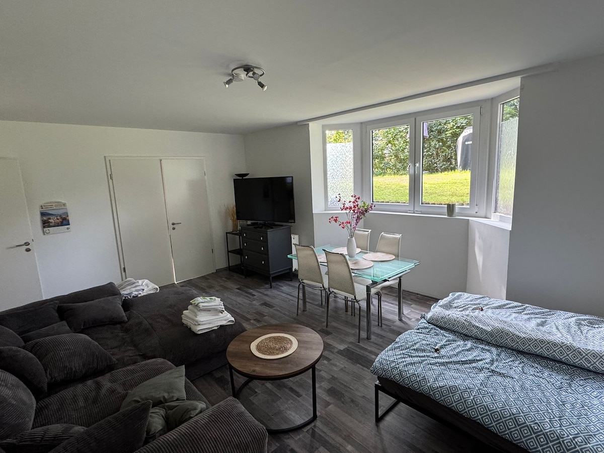 ¡Bienvenido a tu pequeño lugar para sentirse bien en el verde distrito de Berlín de Kaulsdorf! Este apartamento luminoso y cuidadosamente diseñado en la planta baja te ofrece no solo una acogedora comodidad de vida, sino también una hermosa terraza para tu uso exclusivo, perfecta para relajarte, desayunar o simplemente relajarte. El apartamento tiene capacidad para 1 o 2 personas , una cama supletoria de hasta 3 personas o 2 adultos y 2 niños son posibles.
