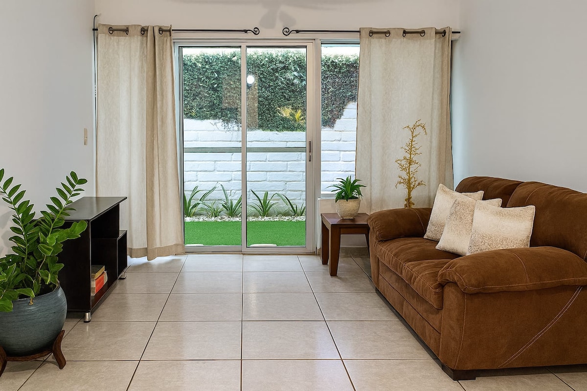 Disfruta de Casa Oasis: acogedora vivienda de 3 habitaciones, perfecta para parejas, familias y grupos. Ubicada en condominio seguro y tranquilo en Managua, Carretera Masaya, en una zona estratégica con fácil acceso a todo. Piscina, seguridad 24/7 y acceso controlado. Disfruta de patio privado, aire acondicionado en todas las habitaciones y cercanía a supermercados, restaurantes y servicios médicos.