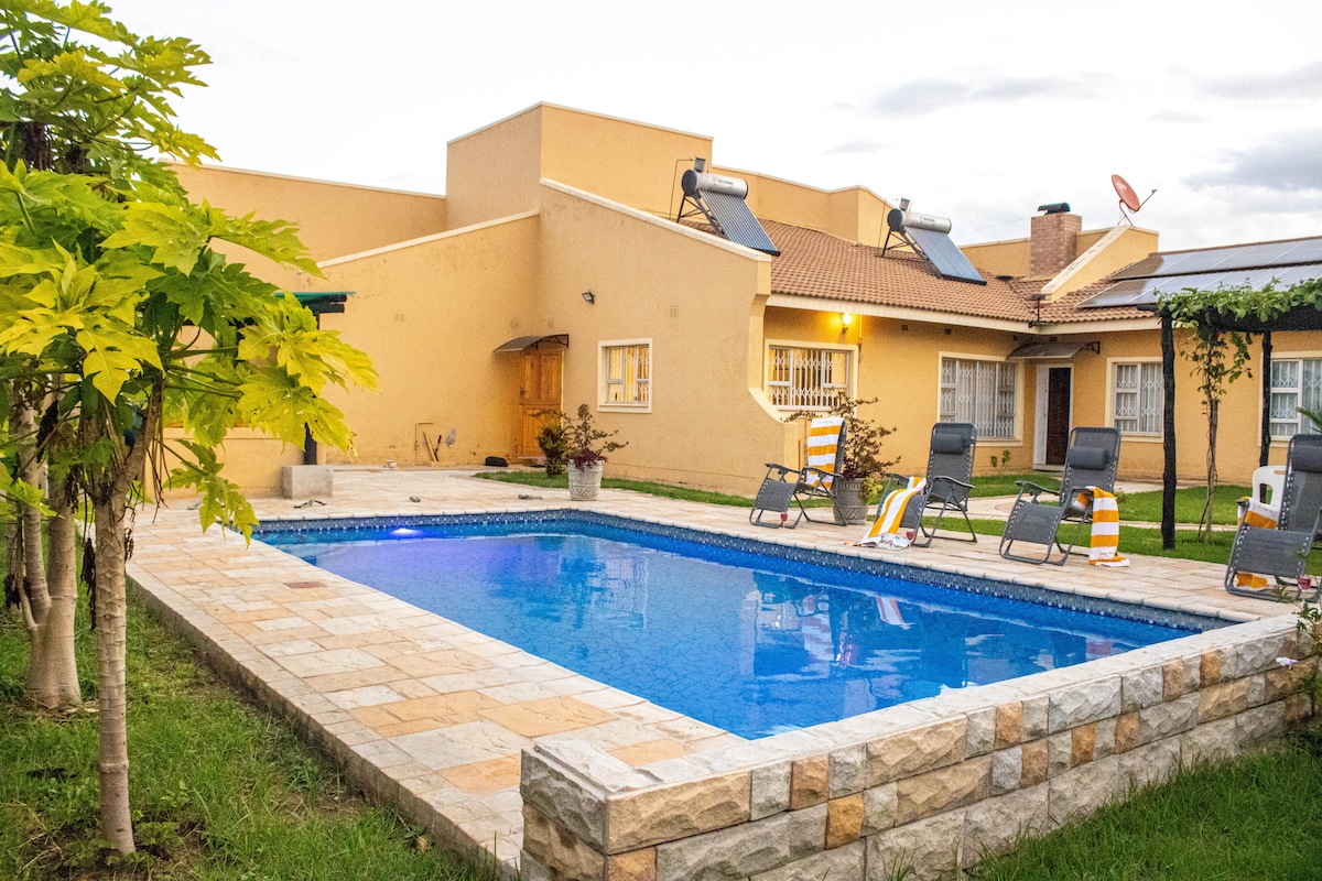 ¿Vacaciones o negocios? Lleva a toda la familia a este fantástico alojamiento dentro de los jardines cerrados y seguros de Madokero, que tiene un montón de espacio para divertirse o disfrutar del tranquilo entorno en una ubicación conveniente… Muy cerca del centro comercial Westgate y a 20 minutos en coche de la ciudad. Disfruta de wifi gratuito, DSTv y un sistema solar fiable. El depósito de agua en la propiedad garantiza un suministro continuo de agua.