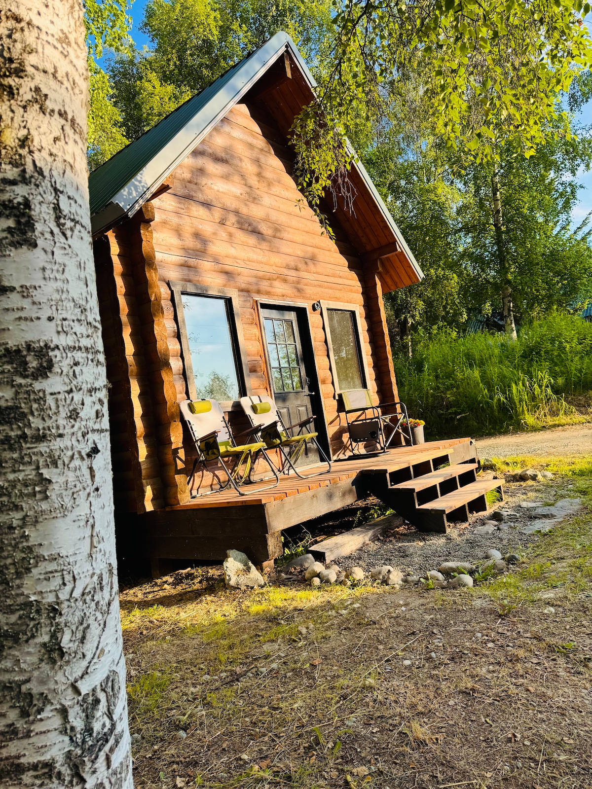 Nuestra cabaña se encuentra en un entorno privado y salvaje junto a un hermoso arroyo. Hay una sauna de leña para tu uso y se encuentra a solo 50 yardas de la cabaña. Desde mediados de julio hasta mediados de septiembre, el salmón a menudo nada junto a la terraza. Nuestra cabaña junto al arroyo de una sola habitación descansa sobre la rama Southfork de Montana Creek, construida con abeto y abedul local. No tenemos televisión ni agua corriente caliente; nuestro baño es una acogedora letrina.