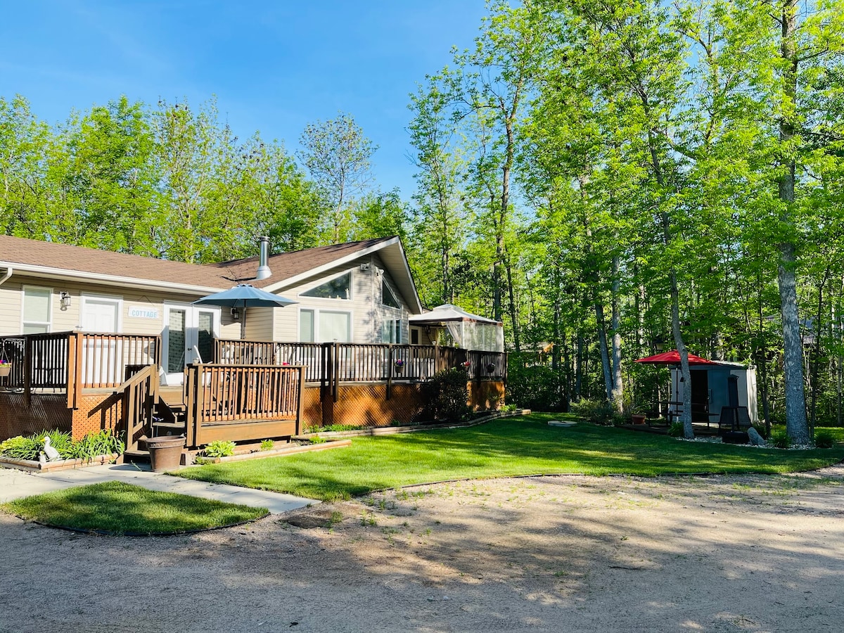 Siéntete como en una película de Hallmark en esta joya totalmente remodelada enclavada en el bosque de Belair. En el Pelican Lodge & Spa, te relajarás al instante en una inmaculada casa de estilo tronco con una bañera de hidromasaje durante todo el año con vistas al bosque, muebles personalizados, electrodomésticos de acero inoxidable, Internet WIFI Starlink, TV inteligente de 55 pulgadas, altavoz Bluetooth y barbacoa. Grandes rutas de senderismo y XC en Victoria y Grand Beach. Increíbles puestas de sol frente al lago a solo 5 minutos a pie.