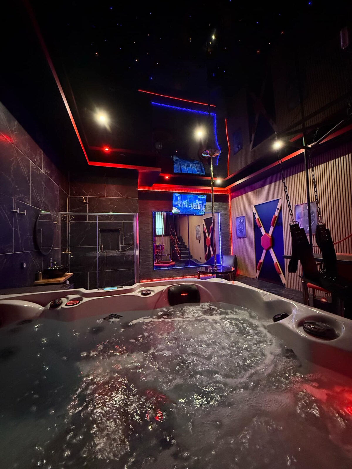 Sumérgete en un universo atemporal, entre sensualidad y misterio. L'Ombre du Désir te invita a un paréntesis embriagador, al estilo BDSM 💋Cada rincón ha sido diseñado para despertar los sentidos y dejar volar sus deseos y su placer 💎 Un espacio exclusivo, un lugar donde uno se redescubre, donde los roles se entrelazan y donde el placer toma el poder. 🛏️ Cama tamaño queen – sábanas de satén 🖤 Elementos sensuales y sexys 🛁 ducha espaciosa 🎶 Altavoz Bluetooth 🌹 Kit y comida a pedido