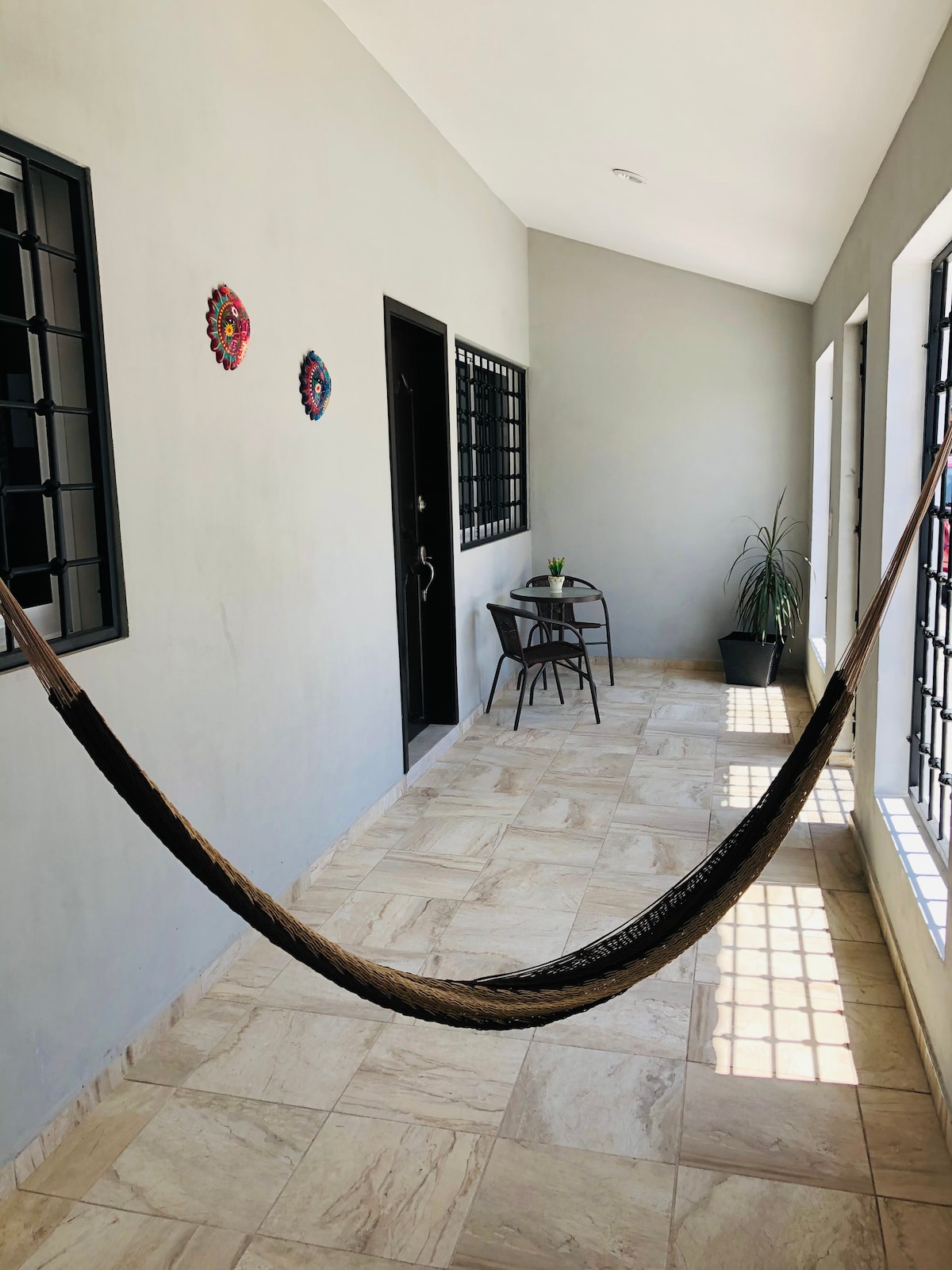 Bonita y nueva habitación privada, en segundo piso, entrada independiente. Cuenta con aire acondicionado, tv, una cama queen y un sofa cama que puede ser usado para 1 persona o 2 niños. Baño completo con regadera eléctrica. Se encuentra muy bien ubicado, zona tranquila y con muchos servicios alrededor. Parques, iglesia, locales con venta de comida. Ruta de camiones. A solo 15min del malecon caminando, 5min. en carro. Cerca de plazas comerciales. Te invito a que te hospedes y disfrutes de Mzt