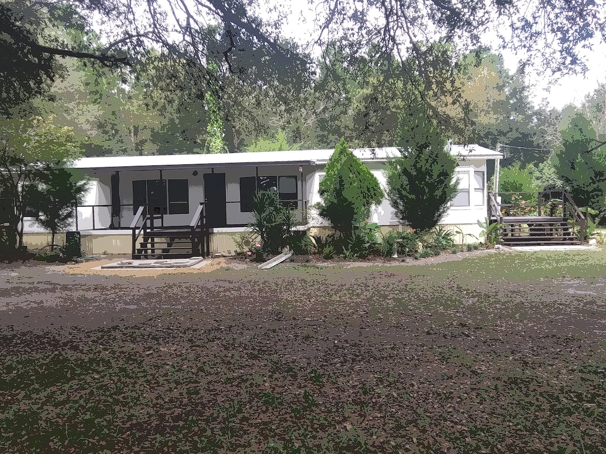 Casa privada 3/2 superlinda y espaciosa en 4 acres que realmente te permite disfrutar de la vida rural sin las tareas. A solo unos kilómetros de varios manantiales y del río Suwanee. (Literalmente tengo 10 manantiales en un radio de 39 millas). Algunos de los manantiales son: Little River Springs (mi favorito), Ichetucknee Springs, Ginnie Springs, Royal Spring, Charles Springs, Rum Island, Hart Springs, Blue Springs, Poe Springs y muchos más. Si bien nuestra casa puede no ser perfecta, es nuestra escapada perfecta al campo.