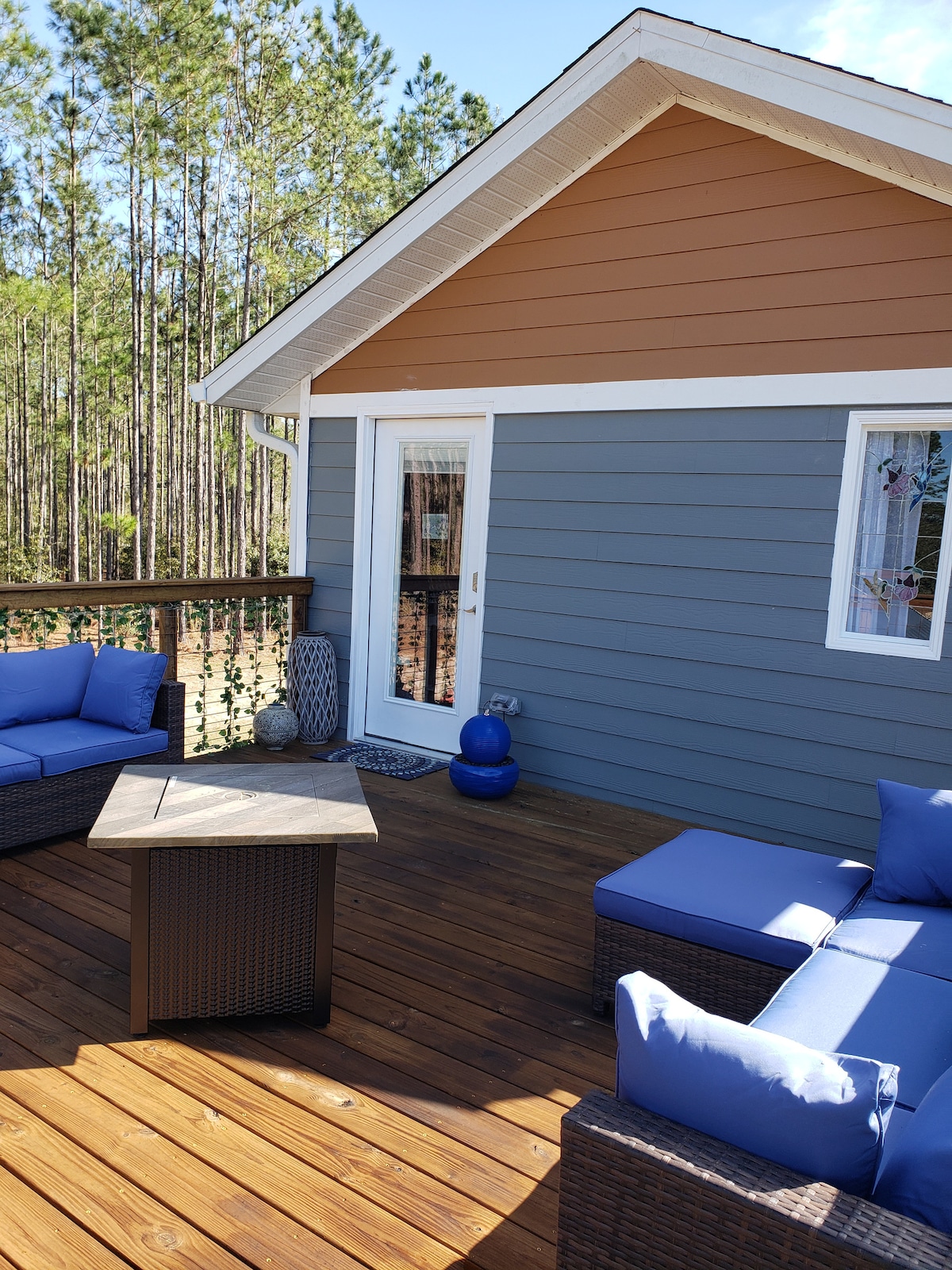 La cabaña de KT se encuentra a pocos minutos de los límites de la ciudad del centro histórico de Live Oak y del hermoso río Suwannee. Si estás de paso por negocios o simplemente de escapada, esperamos que encuentres el alojamiento de nuestra cabaña más que satisfactorio y relajante. El café, el té y el agua embotellada son gratuitos. Mantas adicionales para tu comodidad. Disfruta de la parrilla mientras te relajas junto a una fogata. Se proporcionan madera y carbón. Wifi incluido en la estancia, así como Smart TV.