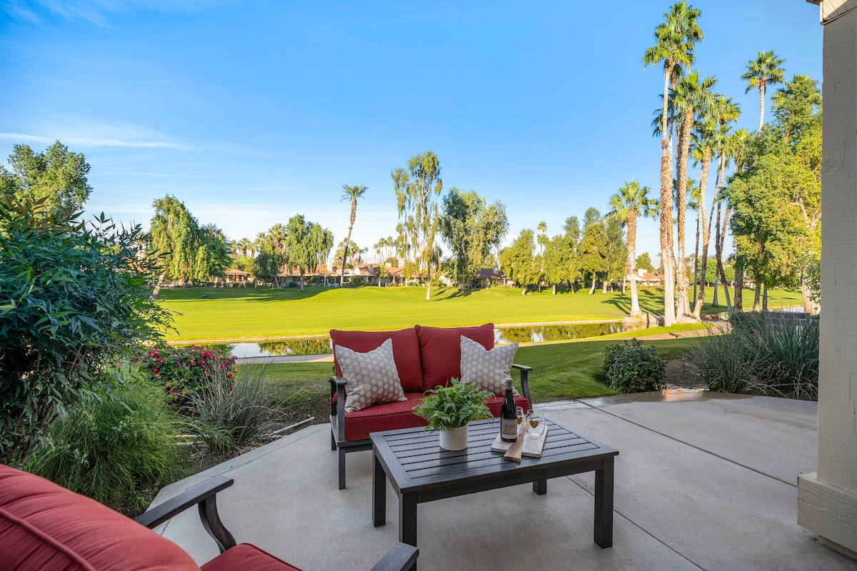 El lugar perfecto para escapar de Palm Desert. Casa de 3 dormitorios/2 baños de 1600 pies cuadrados en el hermoso Monterey Country Club. Esta casa se encuentra en el centro de una fuente de agua par 3, lo que le da algunas de las mejores vistas del barrio. Camas cómodas, sábanas de alta calidad y 3 televisores inteligentes para que te sientas como en casa. 1600 pies cuadrados de una sola planta con techo abovedado que la hace sentir extremadamente espaciosa. El distrito comercial El Paseo está a 2 minutos en coche y ofrece muchas tiendas y restaurantes. Ven a relajarte en el precioso Palm Desert.