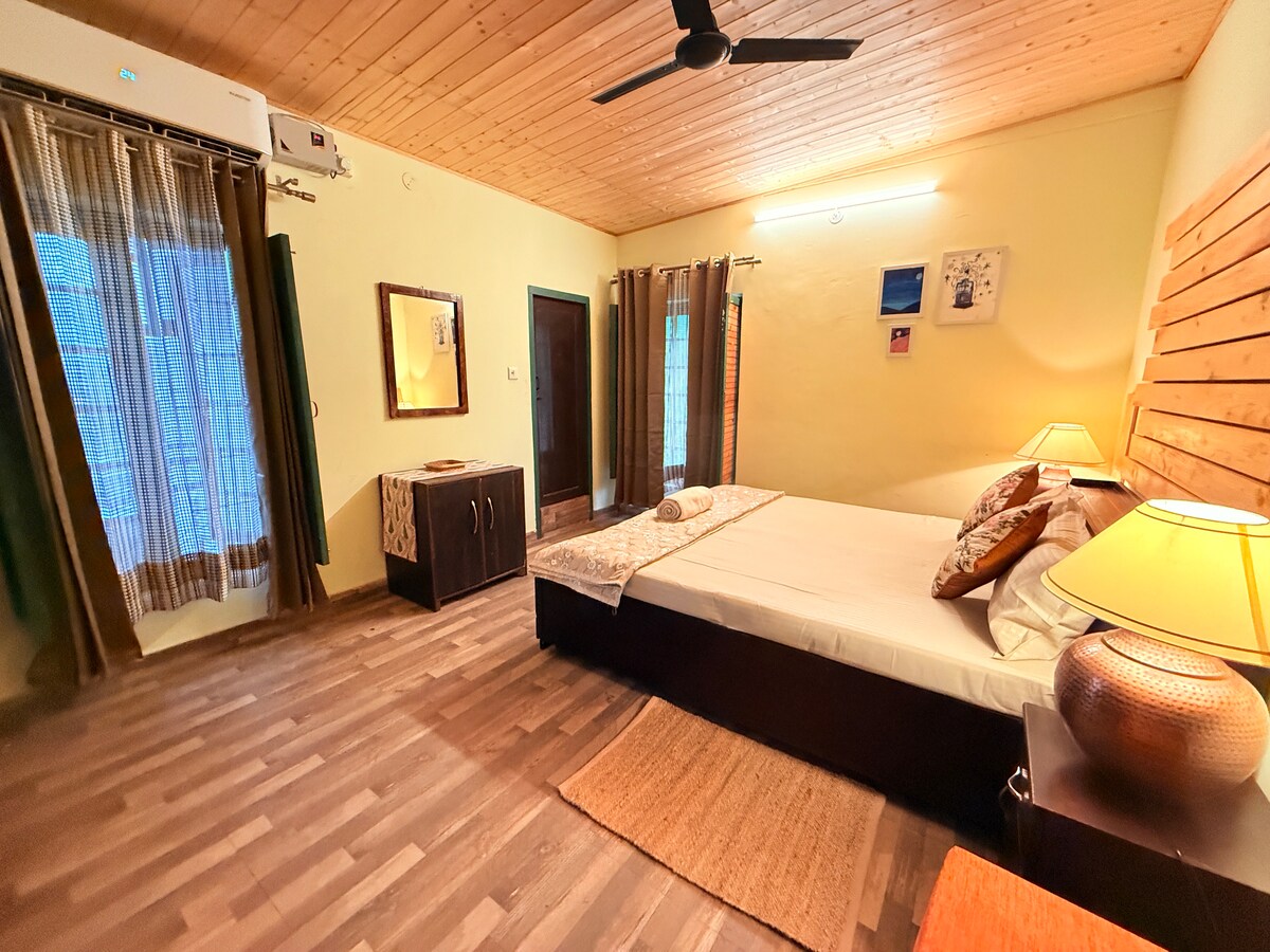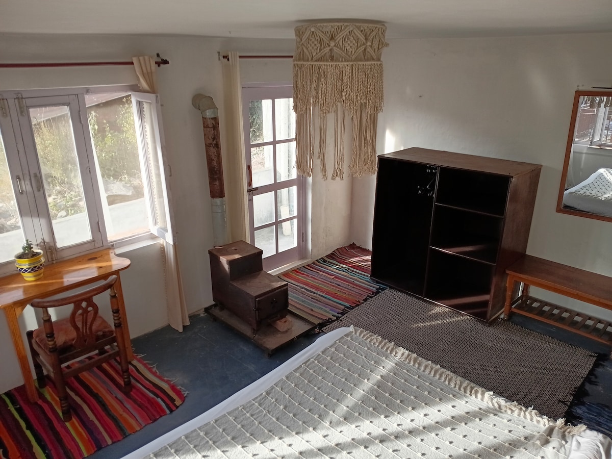 Un loft bellamente diseñado, perfecto para una pequeña familia o una pareja que busca comodidad y tranquilidad. Los huéspedes podrán acceder a verduras frescas de la casa para uso personal, lo que añade un toque saludable y hogareño a la estancia. Esta es una propiedad que admite mascotas, por lo que tus compañeros peludos pueden quedarse a tu lado 🐾 Muy recomendable para quienes no les importa mantenerse alejados del bullicio comercial de McLeod Ganj y Dharamshala y prefieren una experiencia tranquila, estilo pueblo rodeado de naturaleza.