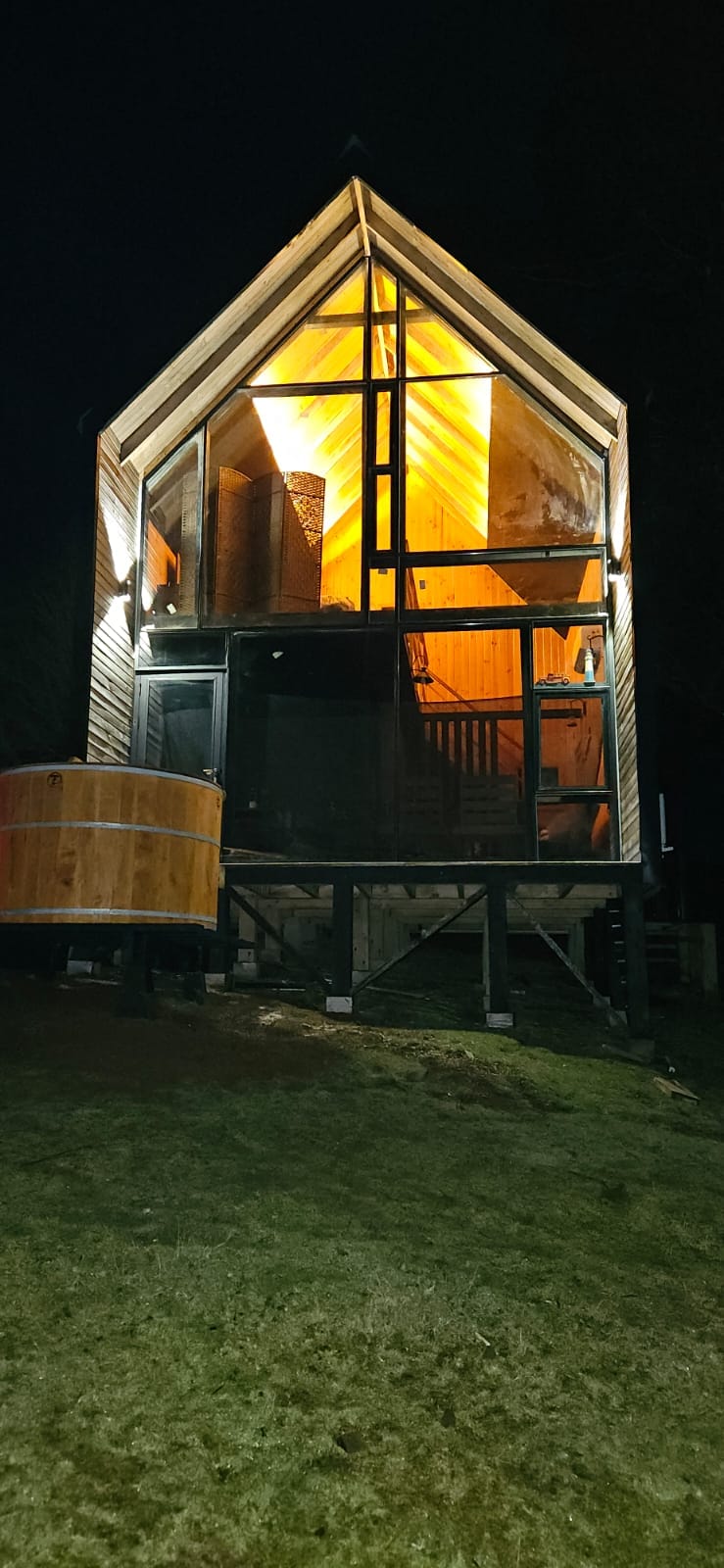 Hermosa cabaña en medio de Chiloé rural. La cabaña está situada específicamente en Teguel Bajo, una pequeña comunidad a 4,5 km de la ciudad de Dalcahue. Se trata de un lugar en medio del campo, rodeado de bosques nativos, a pocos metros del Humedal de Teguel y con una preciosa vista al canal Dalcahue. En el primer piso hay un amplio espacio en donde está la cocina, living, comedor y el hot tube. En el altillo está la habitación principal con una cama de 2 plazas.