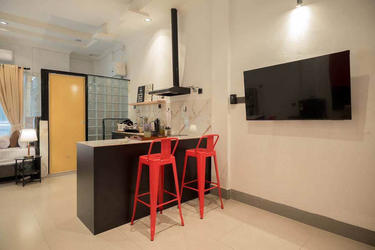 Originally a shop lot, this cozy minimalist studio has been completely reimagined with a brand new, contemporary design! Access: 5 min drive to Sun Plaza mall 10 min drive to Center point Mall Amenities: Café & Restaurant: Right downstairs for easy dining. Free Wi-Fi: Stay connected during your stay Netflix: Free access for entertainment Fully Equipped Kitchen: Prepare your own meals at your convenience We look forward to welcoming you!