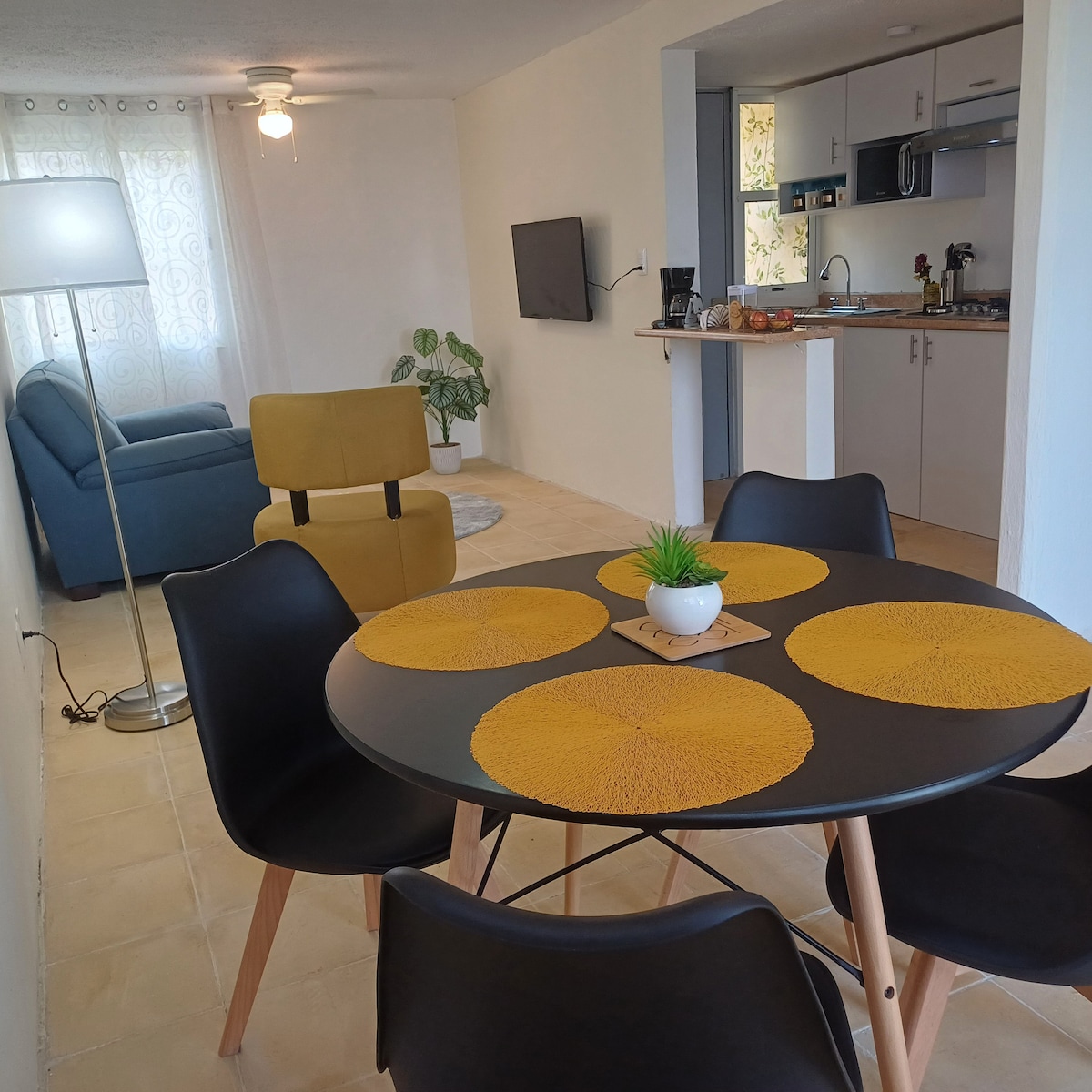 AMBIENTE TRANQUILO Y PET FRIENDLY Para familias pequeñas o parejas que buscan tranquilidad y comodidad. ✔️ Jardín amplio frente al río, relajate o juega con los niños ✔️ Alberca compartida para refrescarte ✔️ Estacionamiento y vigilancia 24/7 ✔️ 100% climatizado ✔️ Cocina equipada, prepara tus comidas favoritas 🏖️ A 5 min de la playa en carro 🛍️ Cerca de Plaza el Dorado y restaurantes. 🏢 A 10 min del WTC en carro 🚗 Fácil acceso a la carretera y al centro de Boca del río y Veracruz.