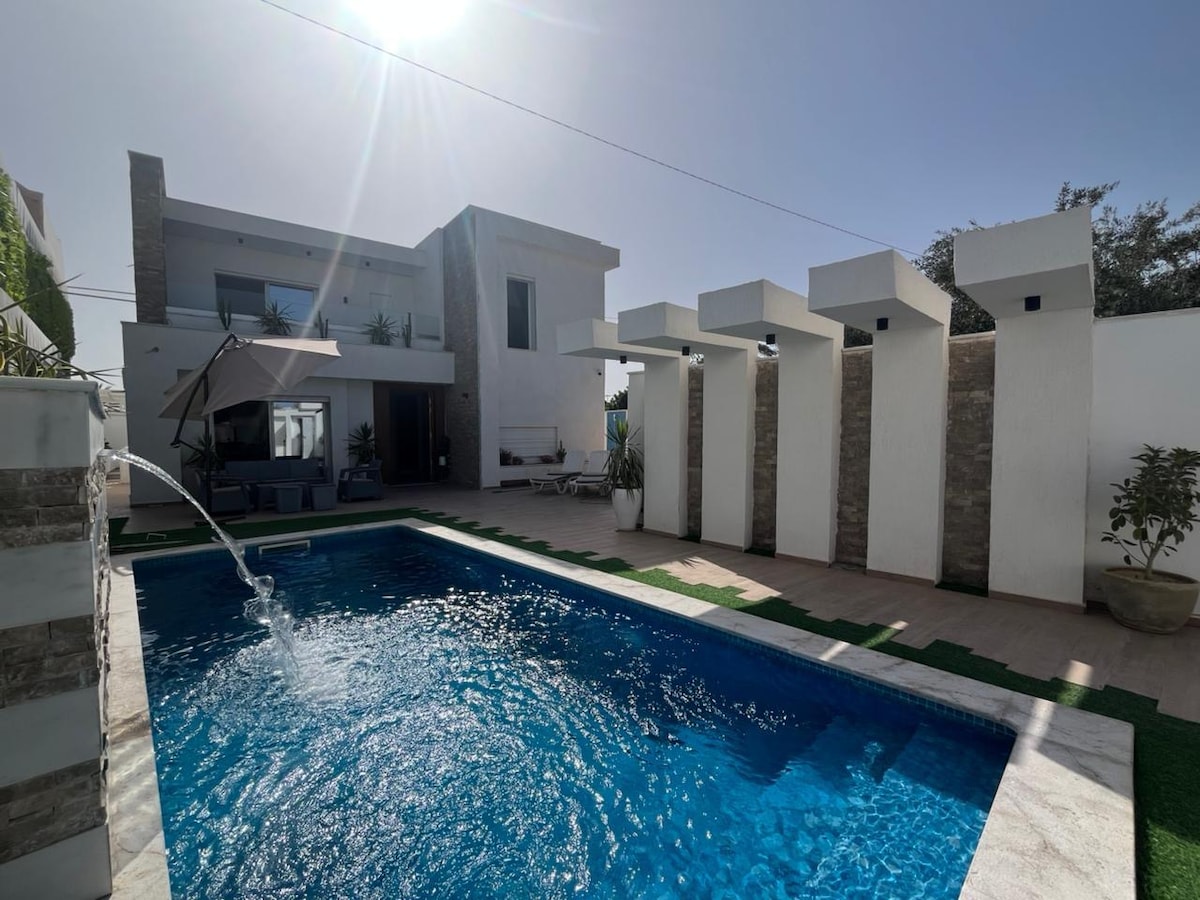 Relájate en este espacio tranquilo y elegante. Con arquitectura djerbiana ubicada en el corazón de la zona turística Ofrecemos a nuestros huéspedes un lugar tranquilo para las vacaciones , A 3 minutos de la playa, bonita piscina con zona de barbacoa Ofrecemos a nuestros huéspedes todos los buenos lugares para ir de compras, restaurantes, museos, actividades , paseos a caballo y excursiones en quad y excursiones por los desiertos con autos 4x4. Servicio de conserjería 24/24 disponible cerca de la villa Tanque de agua de emergencia siempre disponible 😉