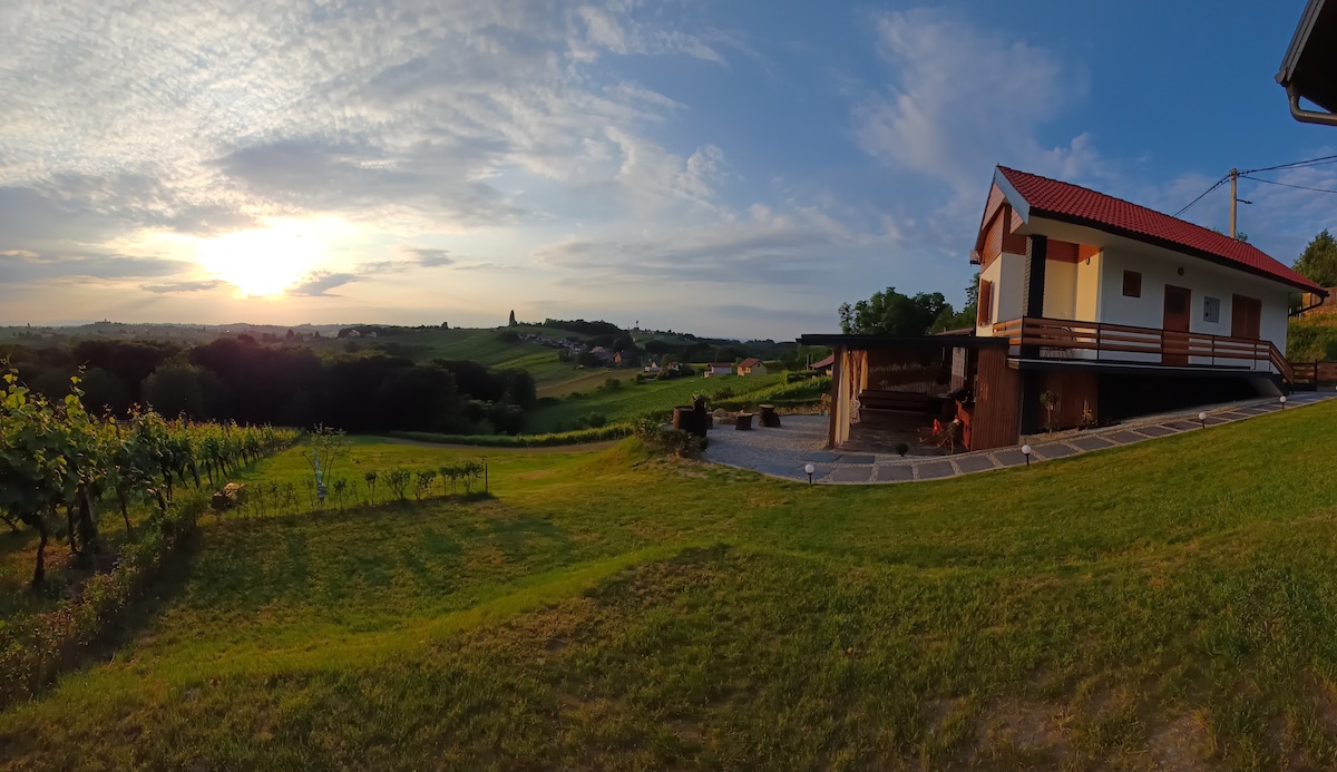 Estamos en Iron Mountain, cerca de Štrigova, en el corazón del condado de Međimurje. Nuestra casa de vacaciones está rodeada de hermosos viñedos y hay completa paz, lejos de la agitada vida cotidiana. Si eres amante del vino, hay muchas vinotecas y bodegas cerca que puedes visitar. Es ideal para un descanso de las multitudes de la ciudad, y por su ubicación y posición, proporciona una '' no vista 'de los alrededores, y ofrece unas vistas increíbles del paisaje